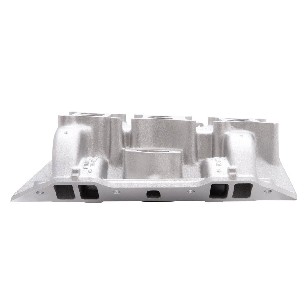 1968-71. This manifold was original equipment on Chrysler 440 Six-Pack engines, Chrysler #P4529056. Will not fit 1962-64 Max Wedge heads. The Edelbrock CH-6B Chrysler 6-pack intake manifold is machined for the OEM 3×2-bbl 4-bolt carburetors. Edelbrock part #2475 CH-6B Chrysler 6-pack intake manifold is designed for 440 c.i.d. Chrysler engines with 3×2-bbl. carbs, also fits 413 and 426 Wedge. #2475 is stock replacement/street legal part for 440 V8’s with OEM 3×2-bbl. carbs