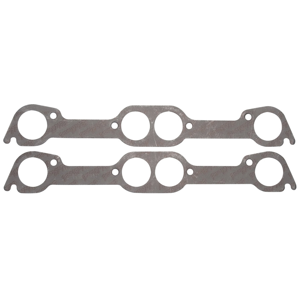 a high-density non-asbestos fiber/metal core composite material consisting of two graphite coated, heat resistant fiber blended sheets that are mechanically and chemically fused to an expanded steel core. The finished product provides high heat resistance, excellent load retention and unmatched sealing performance on exhaust manifold and header applications. A 50% recovery rate allows for gasket expansion in the event your header loses the proper header bolt torque. Gaskets future a 1.880″ port size. Edelbrock part #7281 Exhaust Gaskets are designed for 1961-79 Pontiac 326-389-400-421-428-455 V8 engines. These Exhaust Gaskets are made of EnCore HTX-900