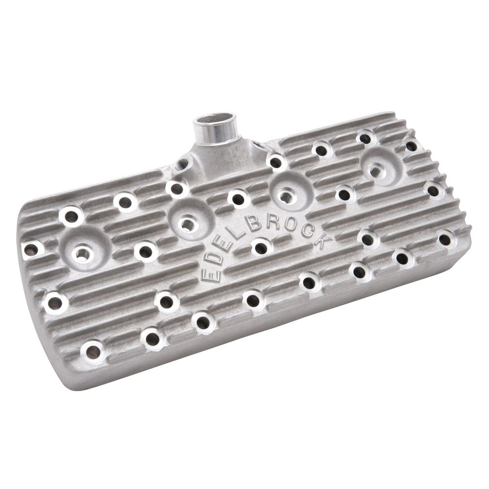 Edelbrock part #1128 Ford Flatheads for 1938-48 Ford/Mercury, 24 Stud cylinder heads feature the original Edelbrock script logo design for Fords and Mercury’s, and are casted at the Edelbrock Foundry in the USA of T-6 tempered A356 aluminum. These Flatheads are rugged, ribbed internally and externally, with a large water capacity and excellent breathing characteristics. This High Lift/Large Chamber version feature a new “raised roof” combustion chamber design that is CNC machined for high lift cams and is perfect for reducing compression in supercharger applications or on low octane fuel. These Edelbrock High Lift heads have increased valve clearance and increased flow capacity.