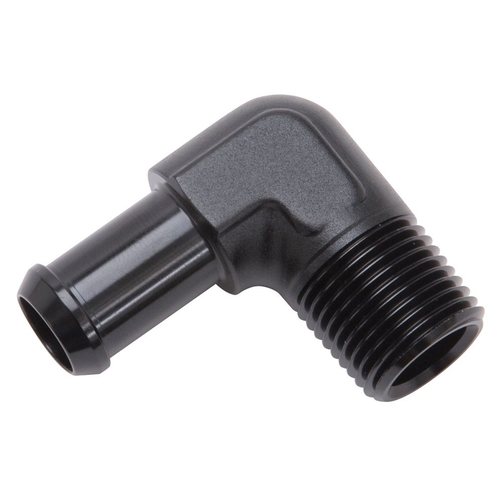 Edelbrock part #8178 heater hose end is designed to hold up to any plumbing task you have. This heater hose end is made from high quality aluminum to ensure they won’t rust or corrode. Features 90 deg. end with 1/2″ NPT and 5/8″ Barb, black anodized finish.