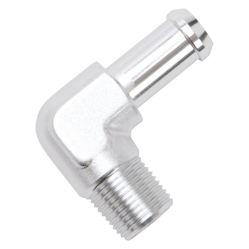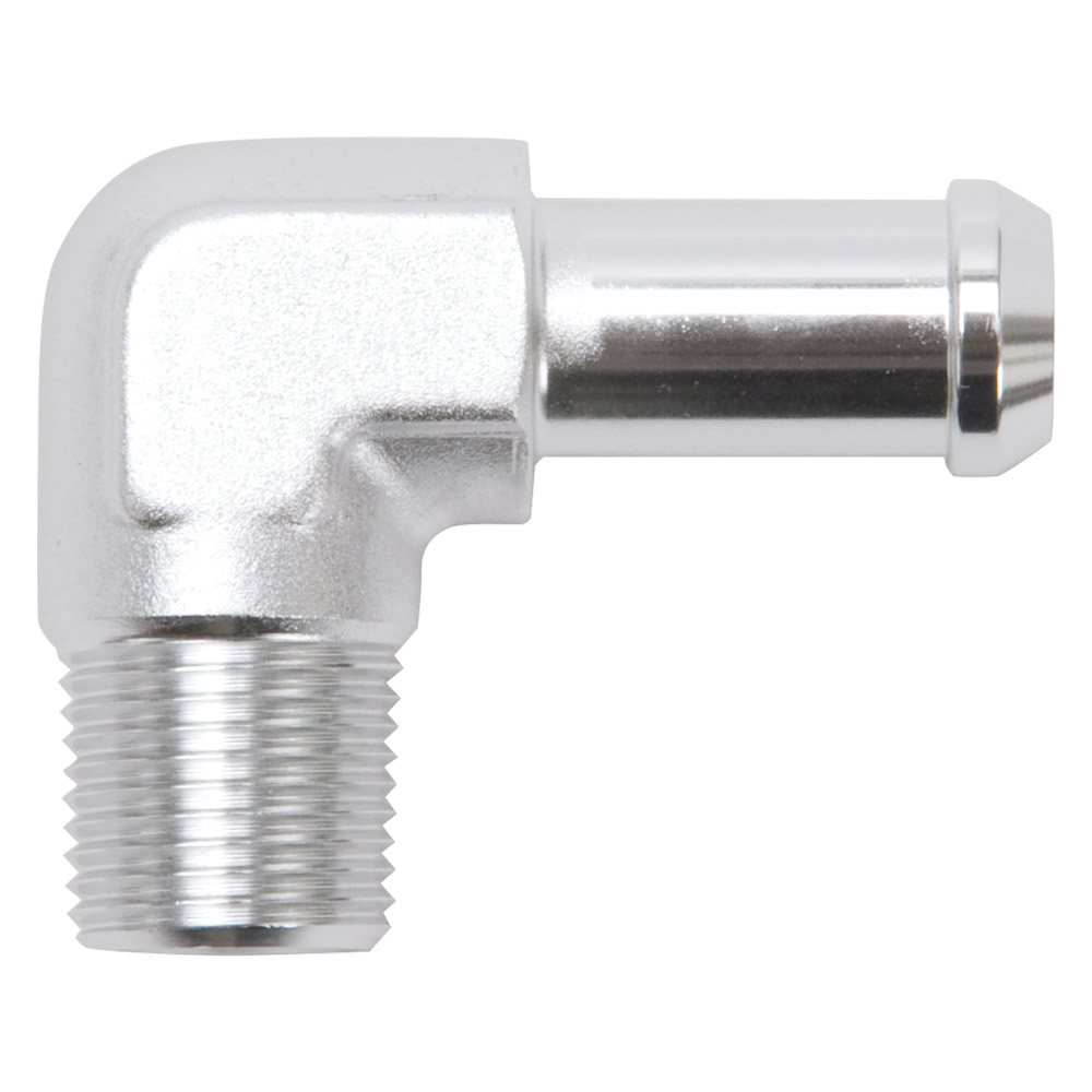 Edelbrock part #8164 heater hose end is designed to hold up to any plumbing task you have. This heater hose end is made from high quality aluminum to ensure they won’t rust or corrode. Features 90 deg. end with 3/8″ NPT and 1/2″ Barb, clear anodized finish.