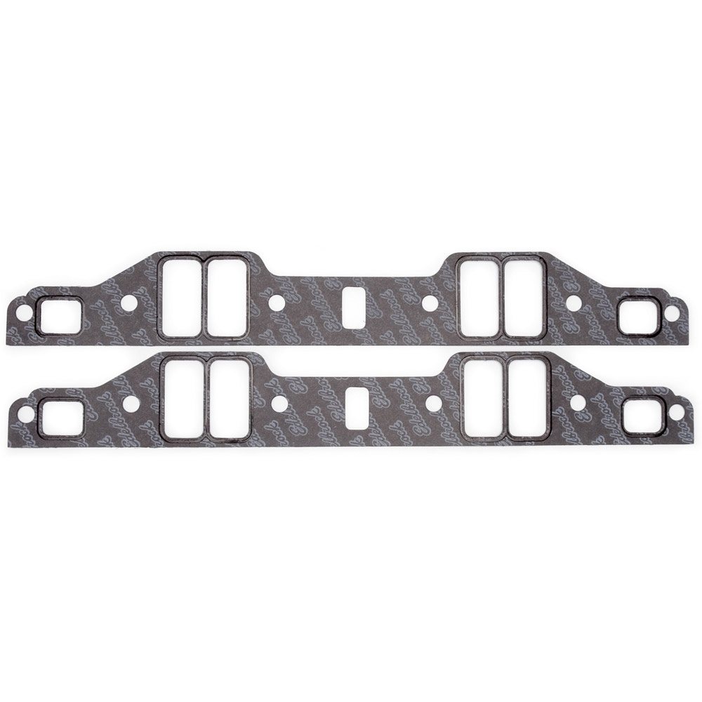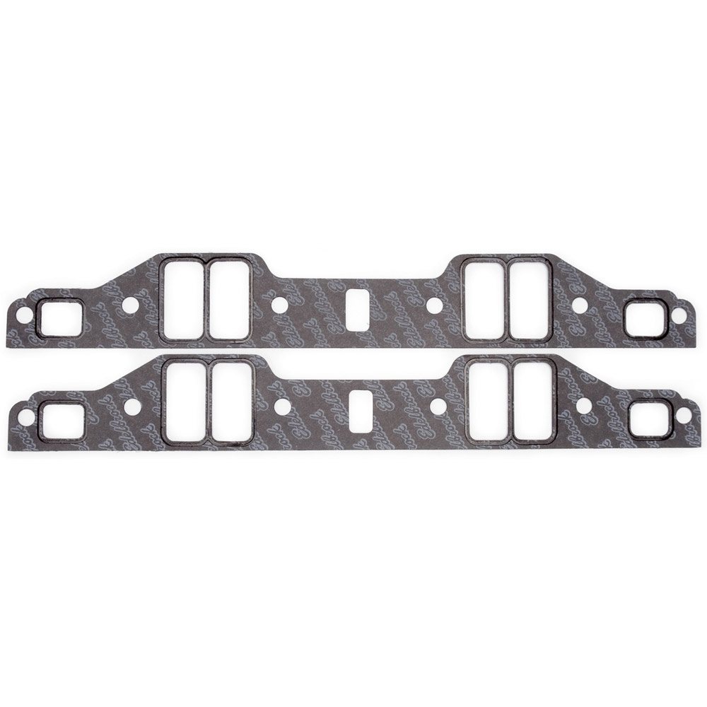 Edelbrock part #7276 Intake Gaskets for 1966-87 318-340-360 Chrysler engines allow for optimum flow and performance. Any gasket can create a seal, but a good gasket can do it with less clamping force, and for a longer period of time. The new MP-2N Micropore technology does not use solvents making our gaskets environmentally friendly. Impervious to most chemicals, this synthetic fiber composite provides a high recovery under load. This means that when compressed, the gasket will conform to any imperfections on the sealing surface even using lower flange pressures. A nitrile bead around each port opening makes the seal even better.