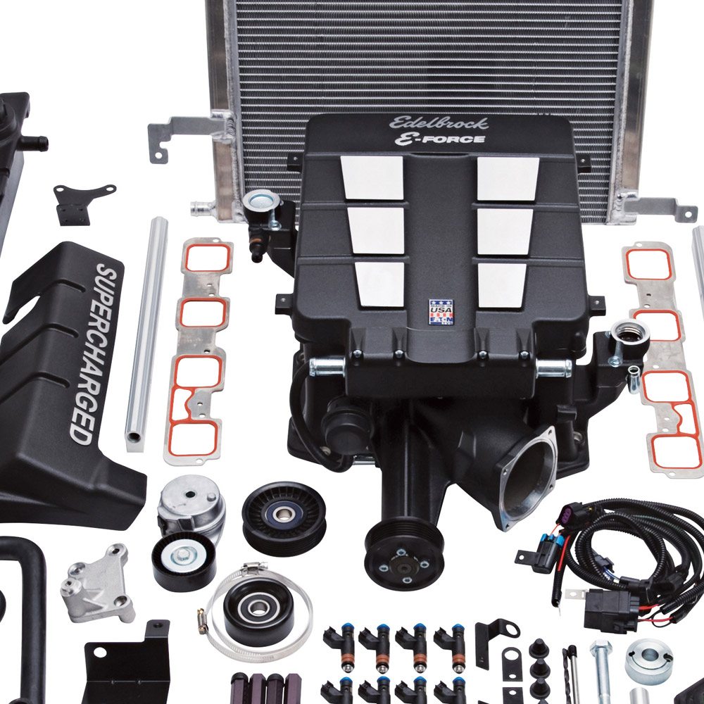 The Edelbrock Supercharger System part #15340 delivers excellent horsepower and torque for your 2011-14 5.7L HEMI Chrysler 300, Dodge Charger or Challenger. This kit allows you to take our Stage 1 kit and get the custom tune you desire. Featuring a unique design with minimal components makes it possible to fit an Edelbrock supercharger under the stock hood. The core of each system is the Eaton Gen VI 2300 Supercharger rotating assembly with a four-lobe design with 160 degrees of twist for maximum flow, minimum temperature rise and quiet operation for excellent drivability. We also designed our superchargers with an integrated bypass valve to help eliminate parasitic loss under light throttle, improving mileage potential. Our unique and efficient inlet configuration results in a shorter, less restrictive intake path for improved airflow, without the need for a jack-shaft. Keeping the air cool is a high-capacity air-to-water intercooler and low-temp heat exchanger. For safety, the Edelbrock-supplied program will retain the factory vehicle speed limiter setting. This kit is NOT supplied with a programmer. Supercharger systems without tuners are not eligible for supplemental warranty. Supercharger systems sold without tuners are only emissions legal when used with the correct Edelbrock program.
