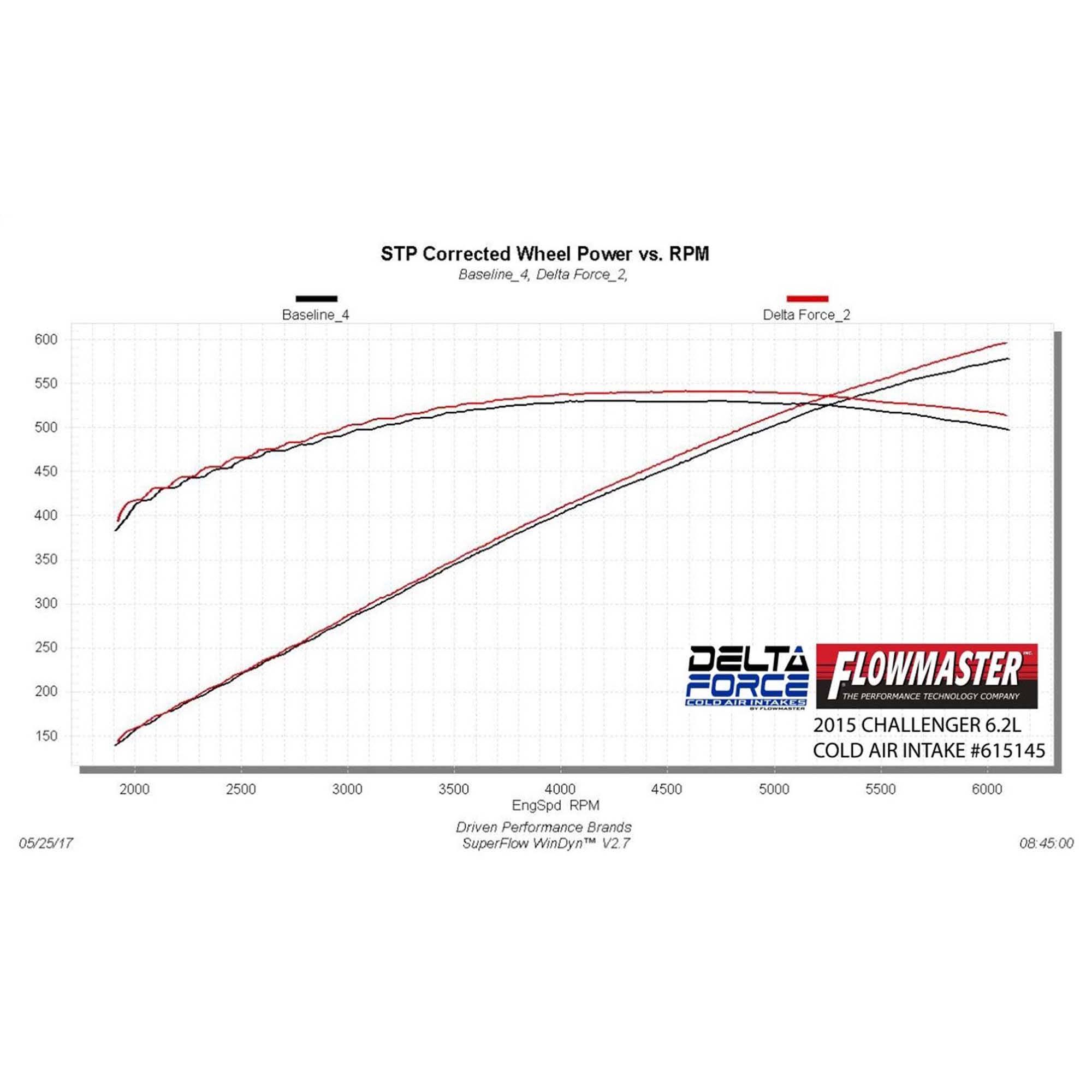 Take the performance of your vehicle to the next level with the addition of Flowmaster’s new Delta Force Performance Air Intake system for 2015-2016 Dodge Challenger and Charger with 6.2L engine. The Delta Force system contains an ultra-trick looking, custom molded black Cross-Linked Polyethylene (XLPE) high-flow intake tube, black anodized aluminum fittings (when applicable), high quality reinforced silicone couplers and all stainless steel hardware.