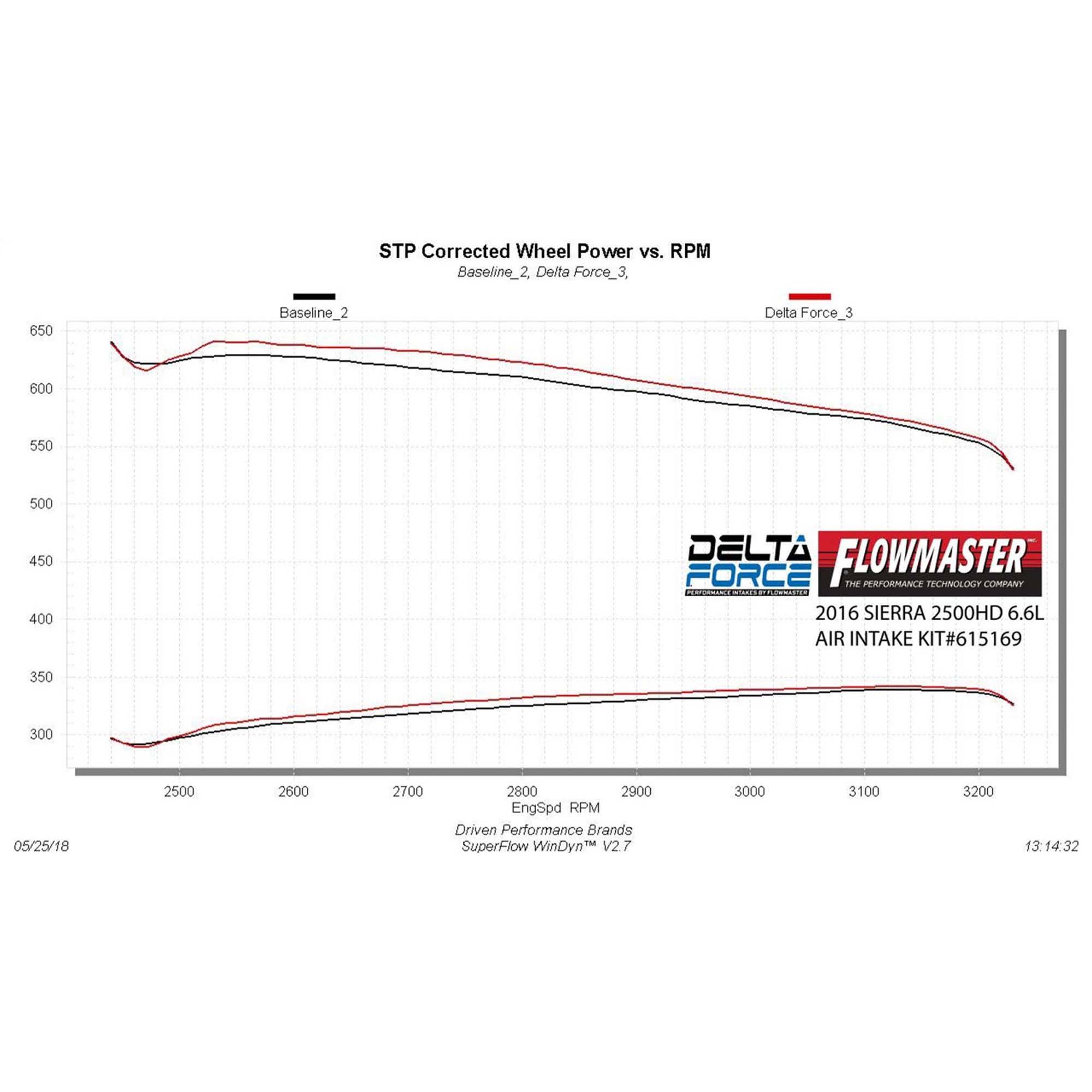 Take the performance of your vehicle to the next level with the addition of Flowmaster’s new Delta Force Performance Air Intake system for 2011-2016 GM 2500HD / 3500HD trucks with the 6.6L diesel engine.