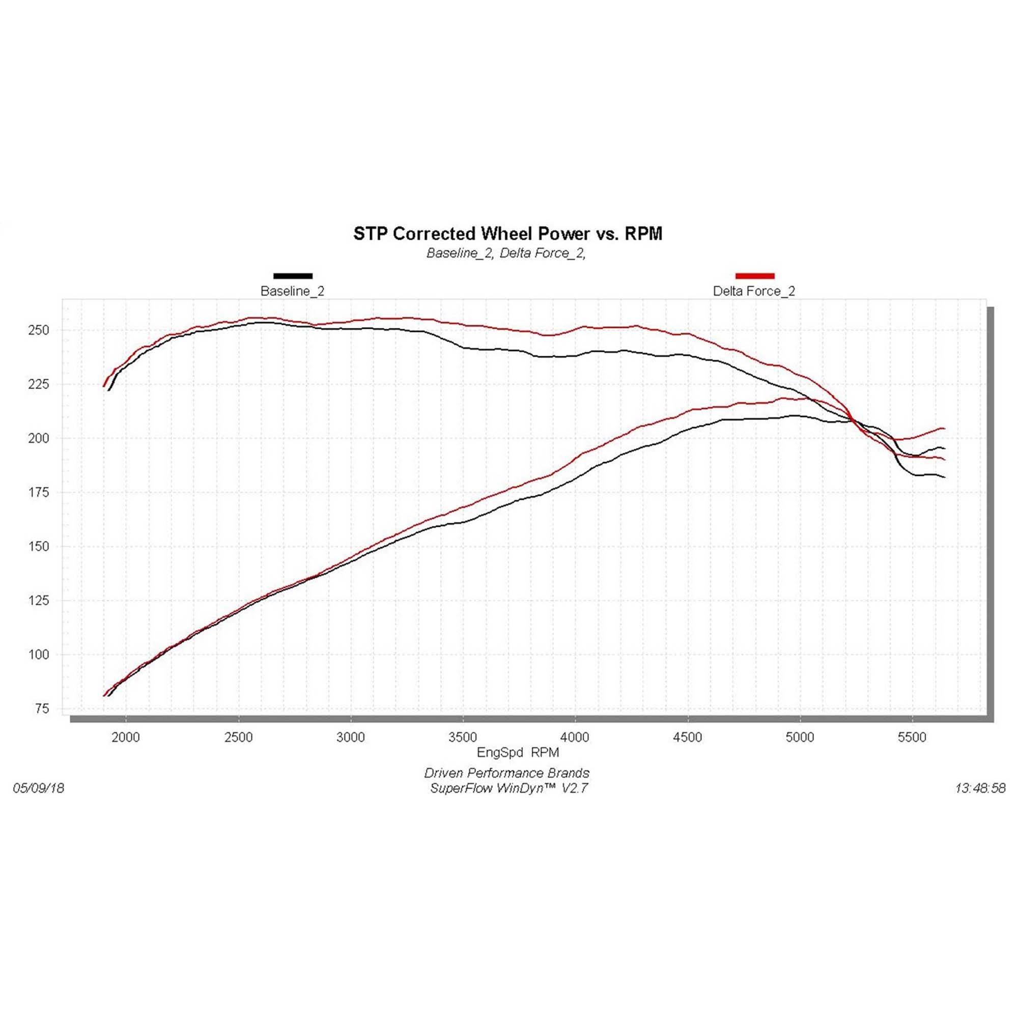 The Delta Force system contains an ultra-trick looking, custom molded black Cross-Linked Polyethylene (XLPE) high-flow intake tube, black anodized aluminum fittings (when applicable), high quality reinforced silicone couplers and all stainless steel hardware. Other features include a large diameter high-flow conical shaped 8 layer cotton gauze air filter, which traps more dirt than typical 6 layer designs, a custom-fit black powder-coated air dam with attachment brackets to securely mount the system in place along with soft bumpers to eliminate any metal to metal contact under the hood.
