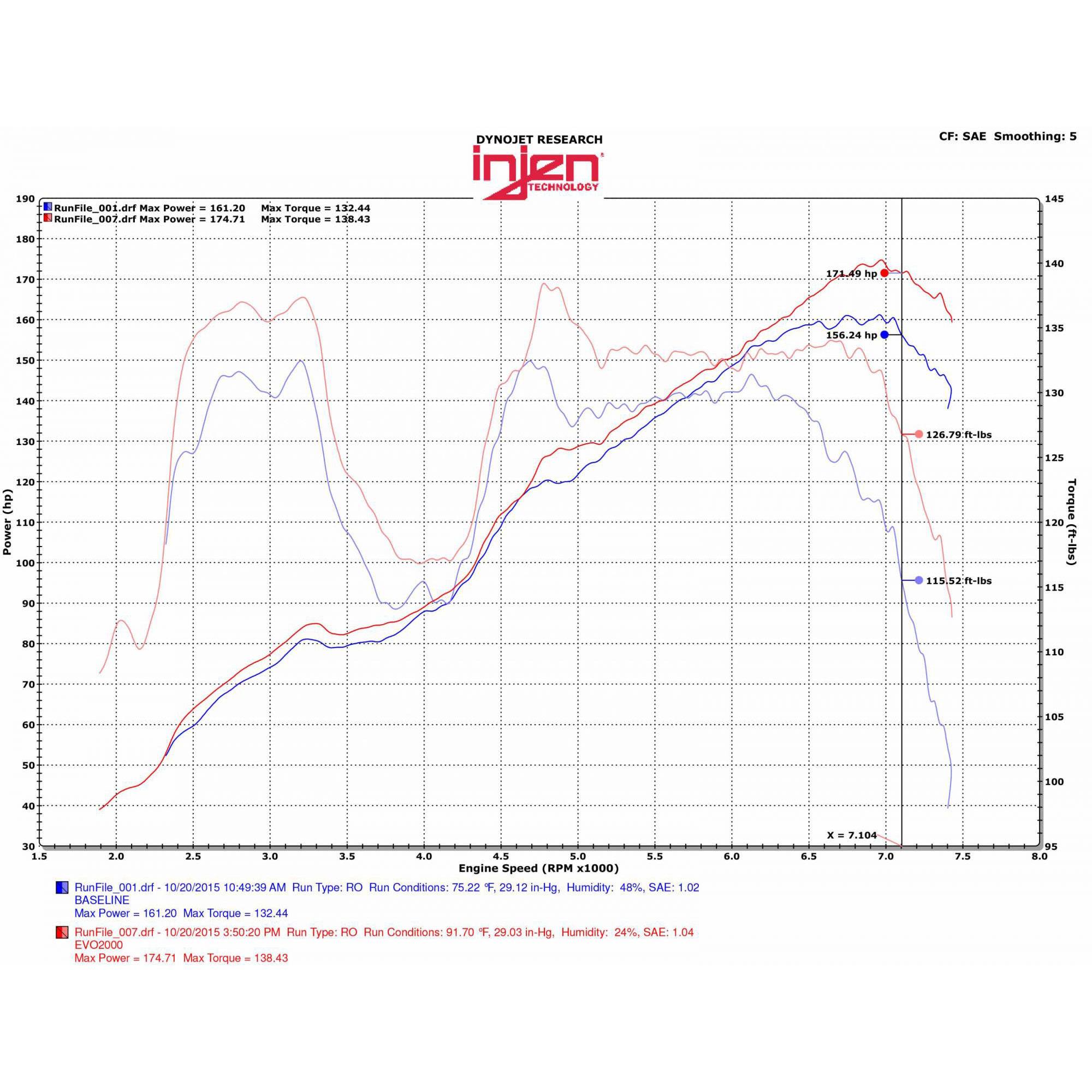 The EVO2001 Cold Air Intake system features our 2-piece box design that incorporates our boost plenum, our fully integrated ram air scoop, and a massive 360 degree SuperNano-Web dry air filter. Every Injen Evolution air induction system utilizes Injen’s proprietary SuperNano-Web dry air filters. Don’t just take our word for it, every intake system that Injen Technology produces is dyno tested in-house and those results are published for anyone to see.