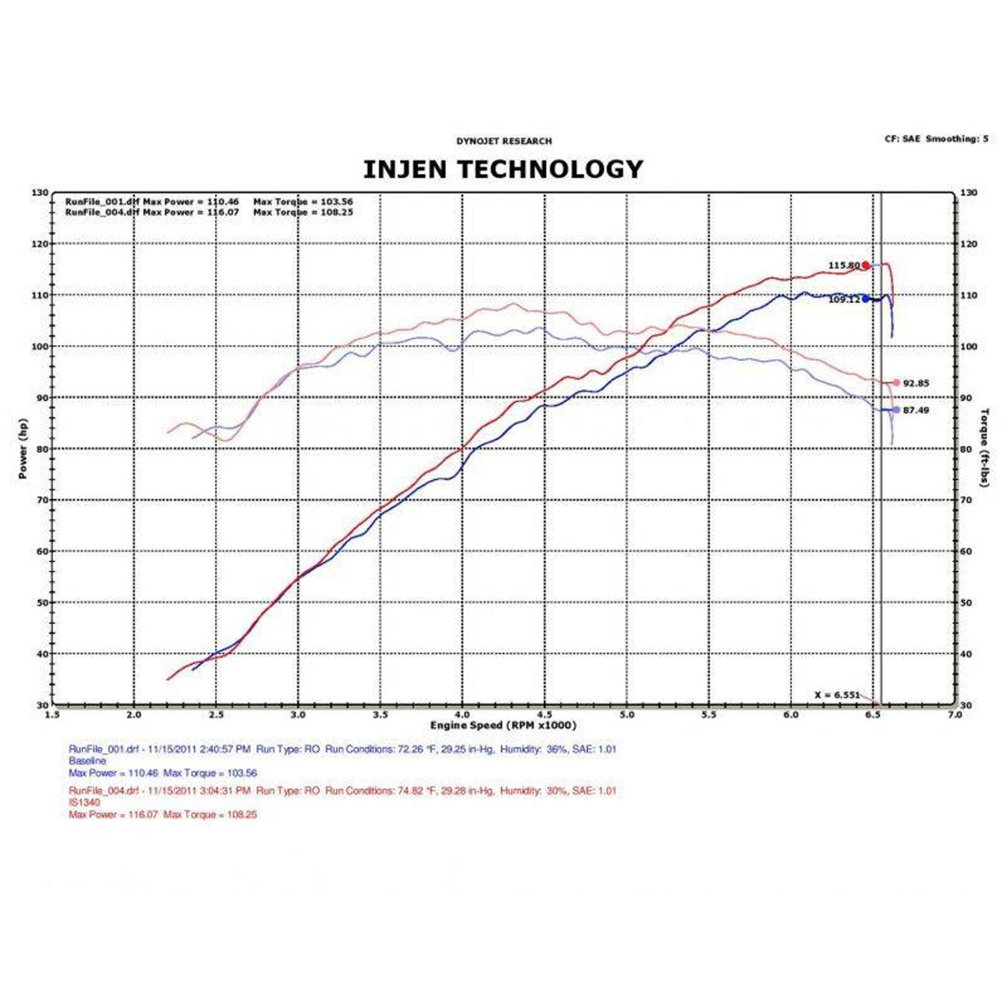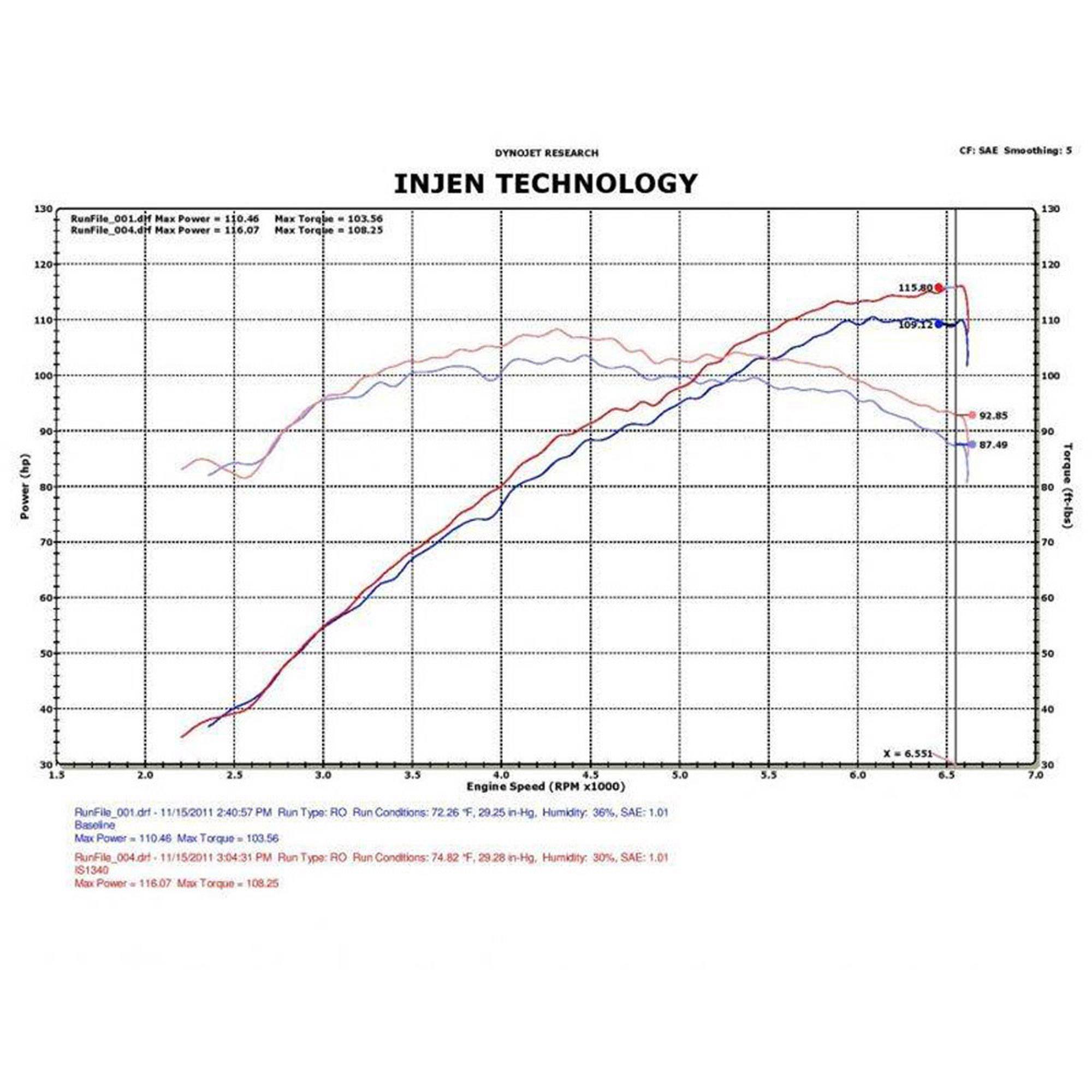 Add easy horsepower to your ride with the Injen Technology IS Performance short ram Air Intake! Our engineers spent abundant amounts of time designing, testing, and perfecting this product to develop some serious bolt-on power with some killer Horsepower increase. In addition to the impressive power increase, the Injen team has ensured that safe Air fuel (A/F) ratios are maintained throughout the powerband. The soul of this intake it is our mandrel-bent aluminum air intake tube that provides a smooth uninterrupted path for highly efficient airflow. Additionally, this kit also includes a fully serviceable Injen SuperNano-Web dry air filter, which provides increased filter surface area, allowing for greater airflow and unbeatable filtration. This Injen IS performance intake provides the power you can hear! It is a truly an upgrade for intake noise and provides an aggressive throaty tone, especially when you put the hammer down. want to add a personalized touch? Well, you are in luck, we offer this kit in a polished finish or a powder-coated black. Plus, just like any other Injen air intake systems, this intake kit includes the unbeatable Injen limited Lifetime Warranty!