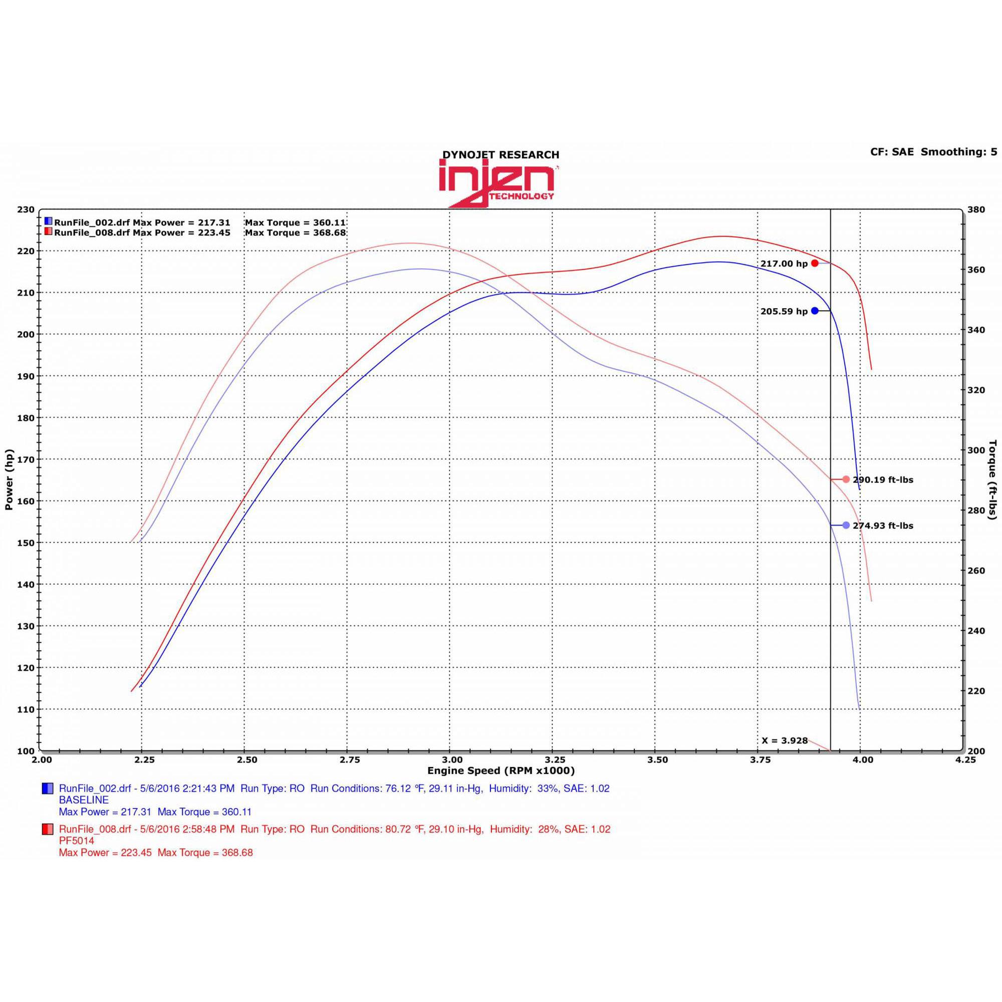 Injen likes to keep things cool, so the air filter is positioned in the best possible location to keep that unwanted hot air from entering your intake. This helps drop air intake temperatures and feed cool, dense air to that hungry engine. This Injen PF intake kit includes everything that is required for a direct-fit installation. Just like all of Injen’s cold air intake systems, this PF Cold air Intake kit includes the unbeatable Injen limited Lifetime Warranty. Rest assured that all of your Injen parts are performing perfectly for as long as you own them!