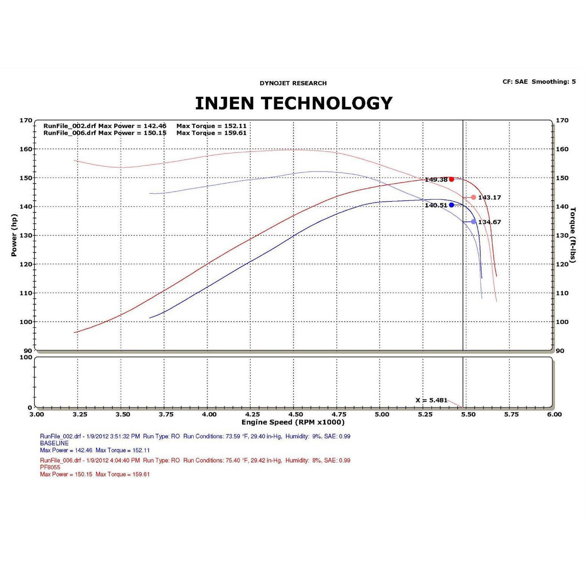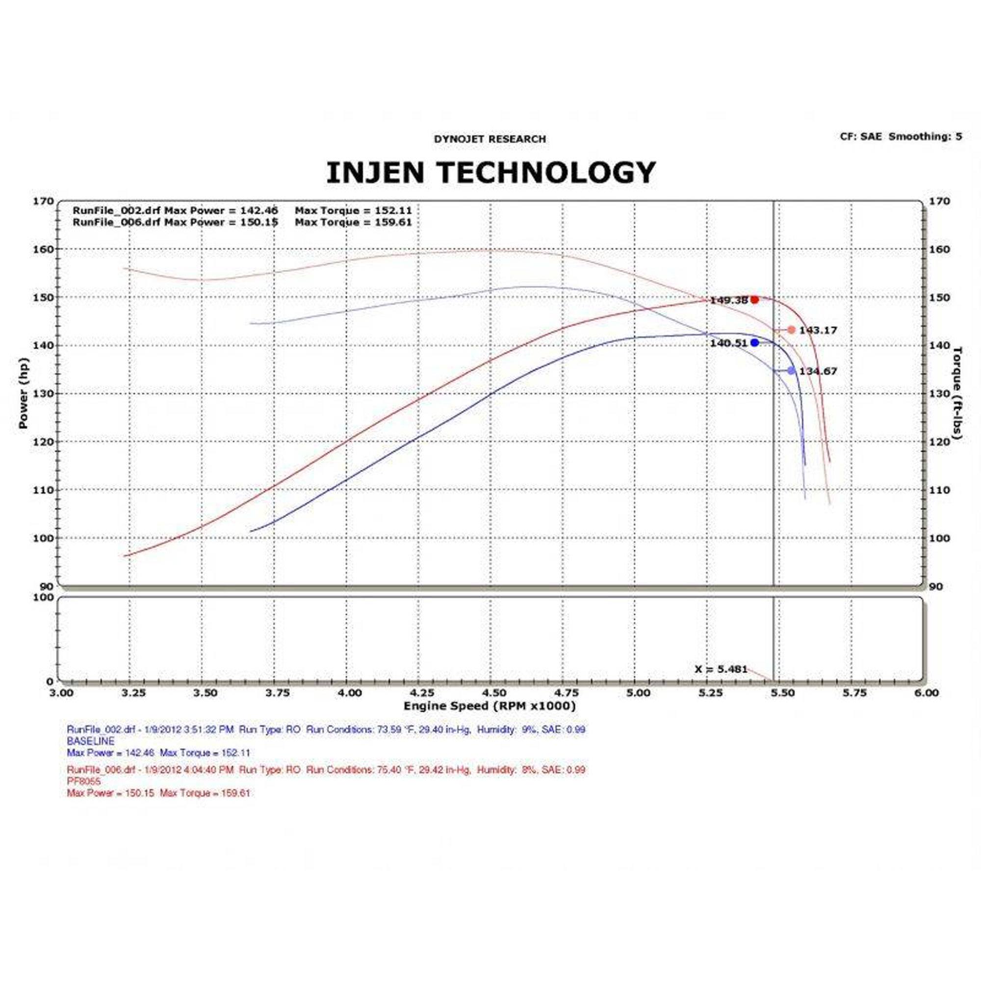 Injen likes to keep things cool, so the air filter is positioned in the best possible location to keep that unwanted hot air from entering your intake. This helps drop air intake temperatures and feed cool, dense air to that hungry engine. This Injen PF intake kit includes everything that is required for a direct-fit installation. Just like all of Injen’s cold air intake systems, this PF Cold air Intake kit includes the unbeatable Injen limited Lifetime Warranty. Rest assured that all of your Injen parts are performing perfectly for as long as you own them!