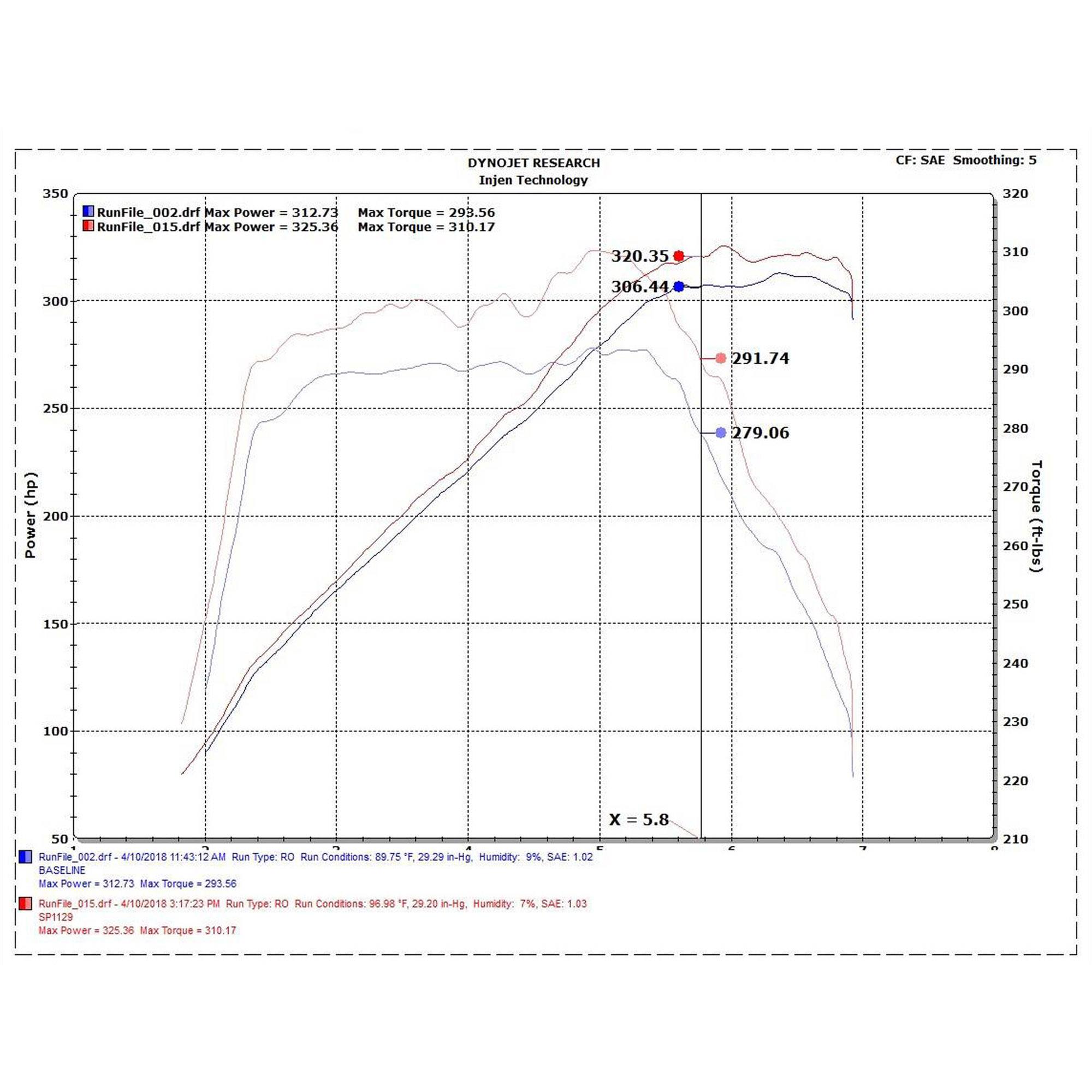 The soul of this intake is found within 6061-T6 aluminum air intake tube that provides a smooth uninterrupted path for highly efficient airflow. Our engineers have painstakingly designed the intake to provide the highest levels of safe power, along with clean aesthetics that will impress every time you open your hood. In addition to the impressive power increase, the Injen team has ensured that a safe Air fuel (A/F) ratio has been maintained throughout the power band.