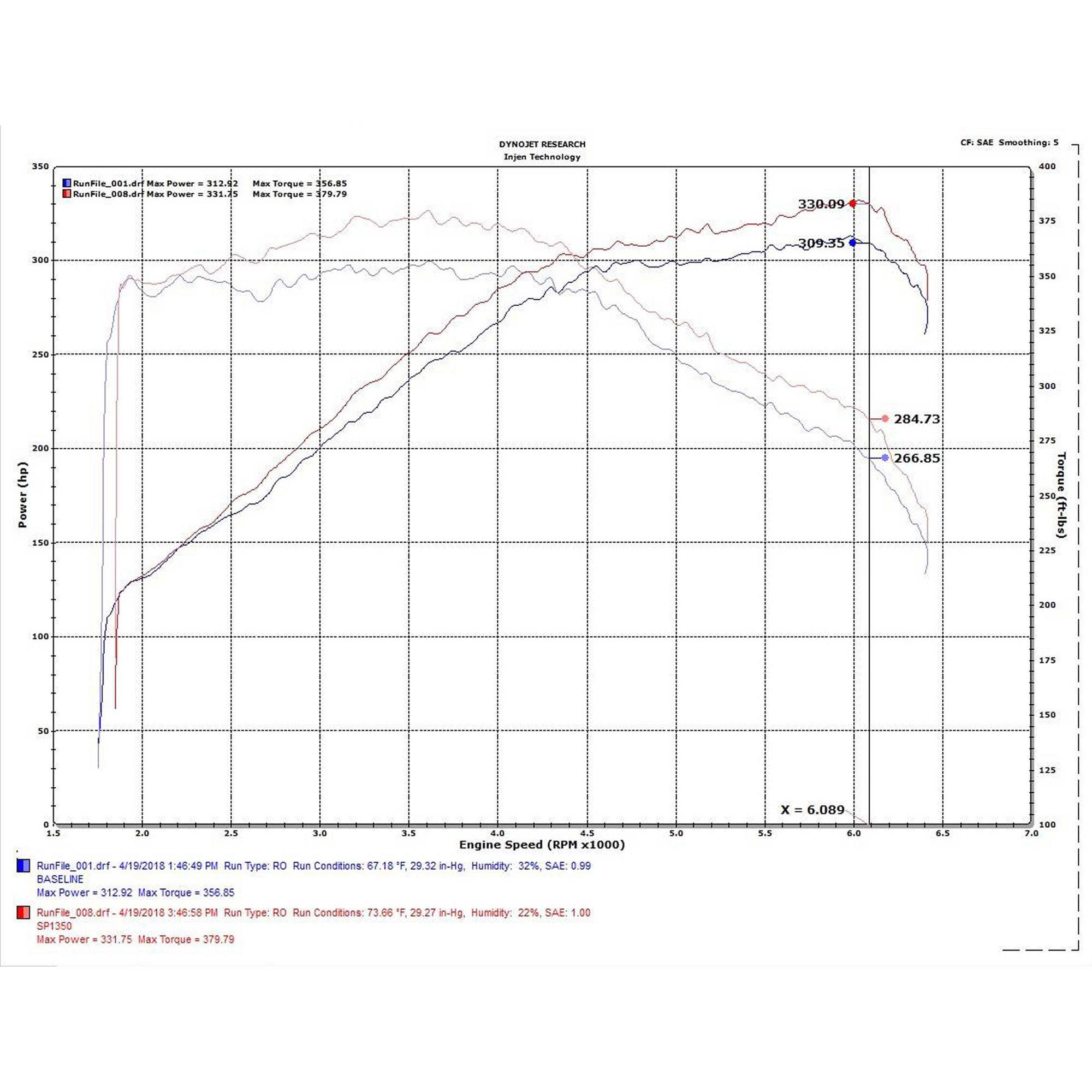 Additionally, the SP1350 dual intake system includes a fully serviceable Injen SuperNano-Web dry air filter, which provides increased filter surface area allowing for greater airflow and unbeatable filtration. If that is not enough, the Injen SP performance intake provides power you can hear and feel! On our dyno, the SP1350 dual intake system put down an impressive 21 additional horsepower and 18 pound-feet of tire-scorching torque!