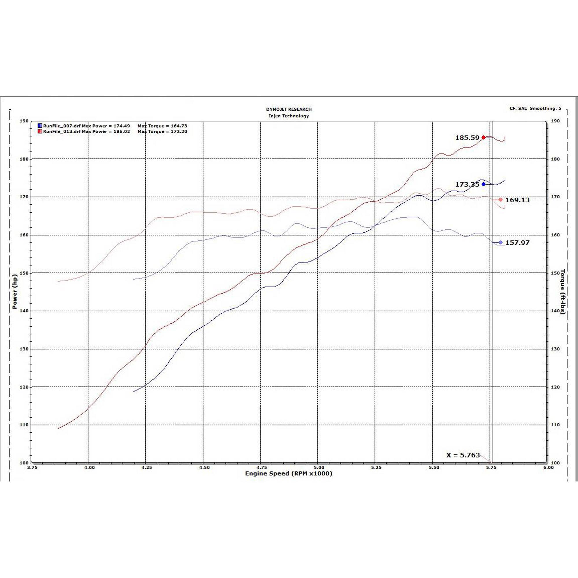 The soul of this intake is found within 6061-T6 aluminum air intake tube that provides a smooth uninterrupted path for highly efficient airflow. Our engineers have painstakingly designed the intake to provide the highest levels of safe power, along with clean aesthetics that will impress every time you open your hood. In addition to the impressive power increase, the Injen team has ensured that a safe Air fuel (A/F) ratio has been maintained throughout the power band.