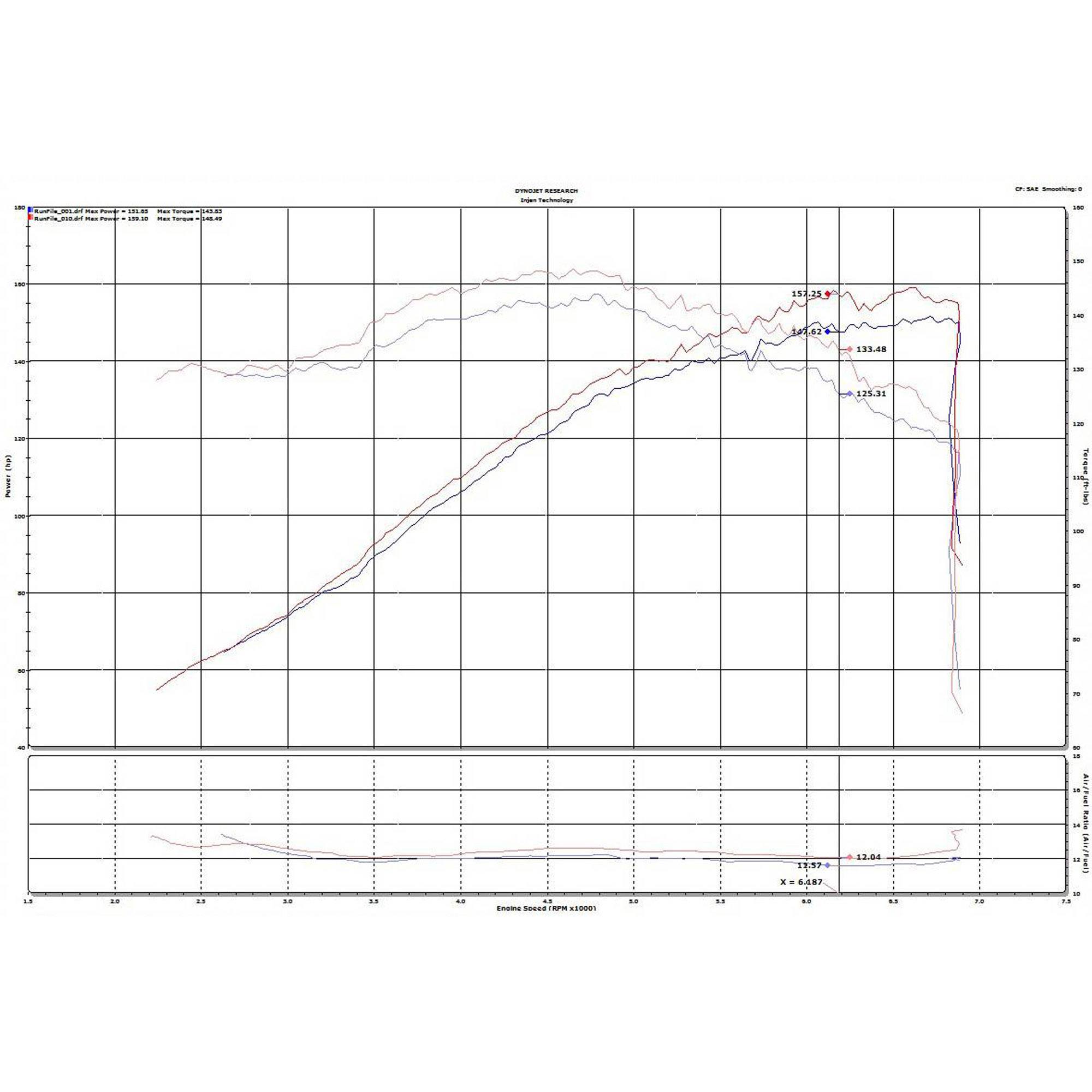 The soul of this intake is found within 6061-T6 aluminum air intake tube that provides a smooth uninterrupted path for highly efficient airflow. Our engineers have painstakingly designed the intake to provide the highest levels of safe power, along with clean aesthetics that will impress every time you open your hood. In addition to the impressive power increase, the Injen team has ensured that a safe Air fuel (A/F) ratio has been maintained throughout the power band.