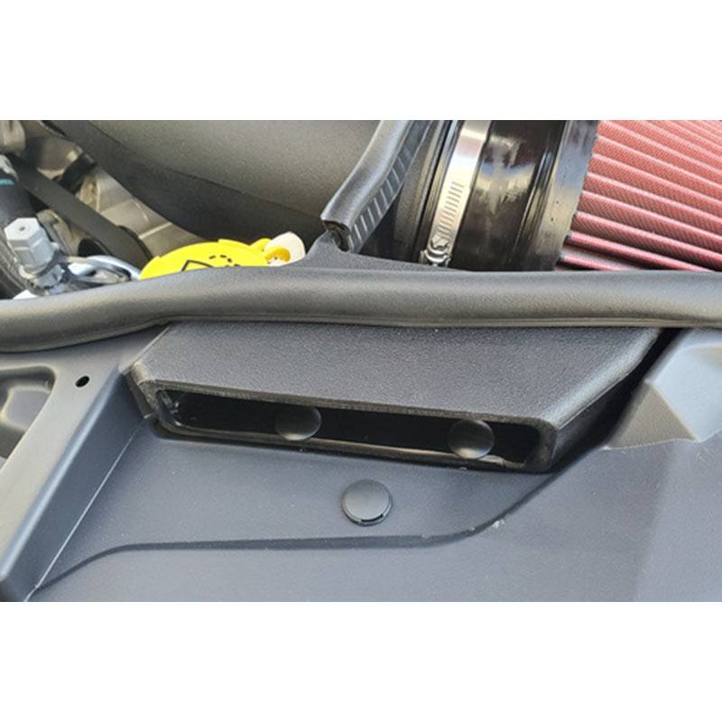 Includes our large ABS plastic Heat Shield to block engine heat at idle and low speed. It uses a large area to make sure the filter has tons of cool air and uses the factory fresh air inlet from the bumper to keep temps cool as stock