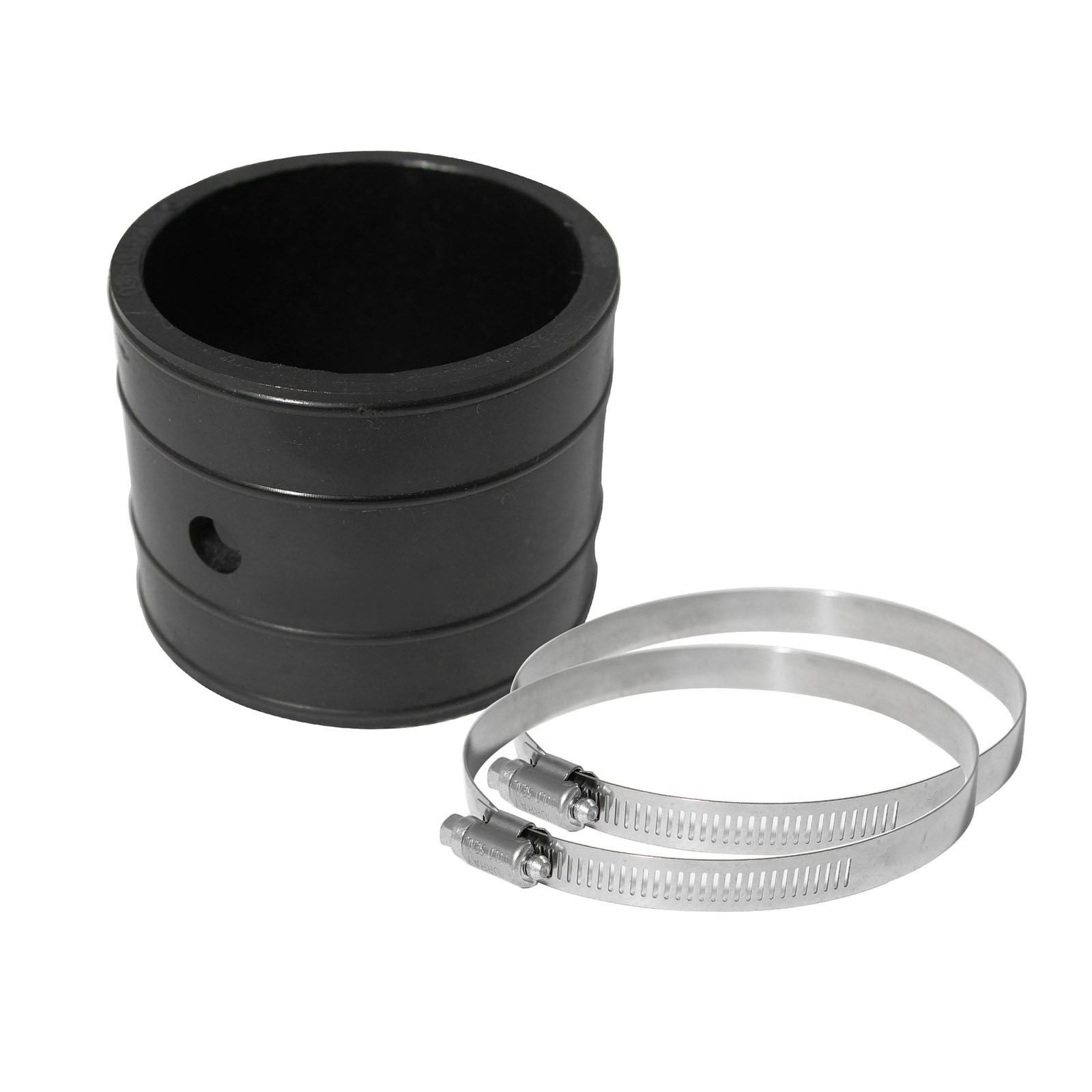 Two corrosion-resistant stainless-steel worm clamps (#096) are included, providing a secure seal for virtually any application.