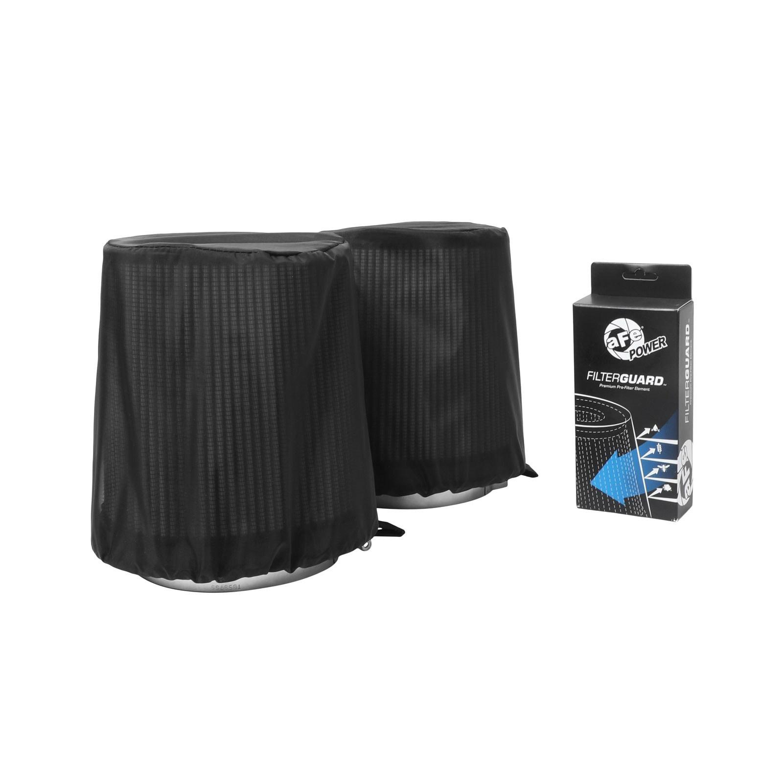 aFe POWER Magnum SHIELD Pre-Filters protect your performance air filter and extends your filter cleaning intervals by removing large particles like twigs and bugs from the air stream prior to the air filter. Made of a dry weave fabric to repel dirt and clean simply with soap and water.