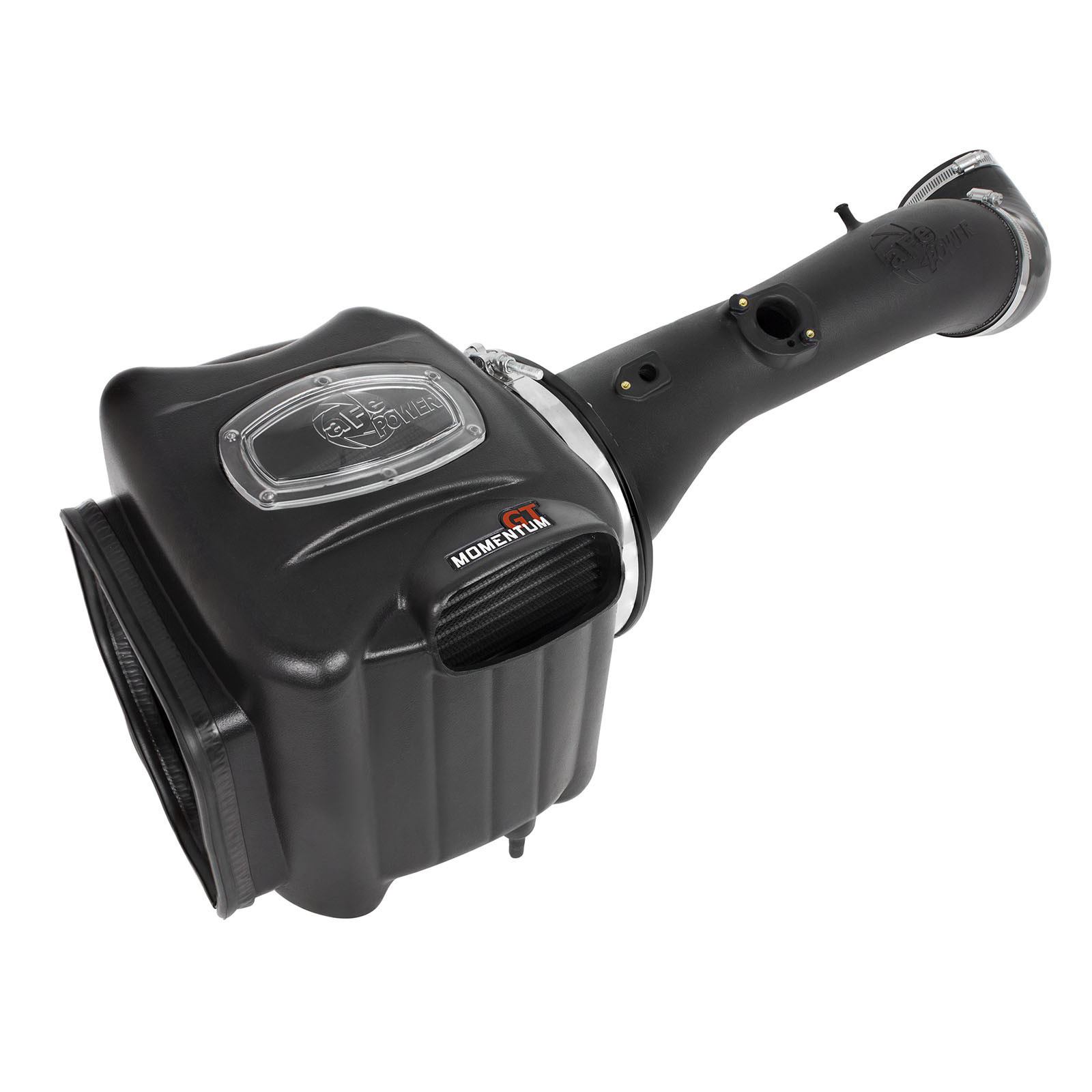This Momentum GT intake system was designed around the largest filter possible to allow maximum performance and filtration. This cone filter has a large round flange and is 9″ tall inverted top Pro DRY S filter media. The Pro DRY S performance air filter features 3-layers of progressive finer porosity synthetic media providing maximum convenience with 100% polyurethane frame for long life and multiple cleaning cycles.