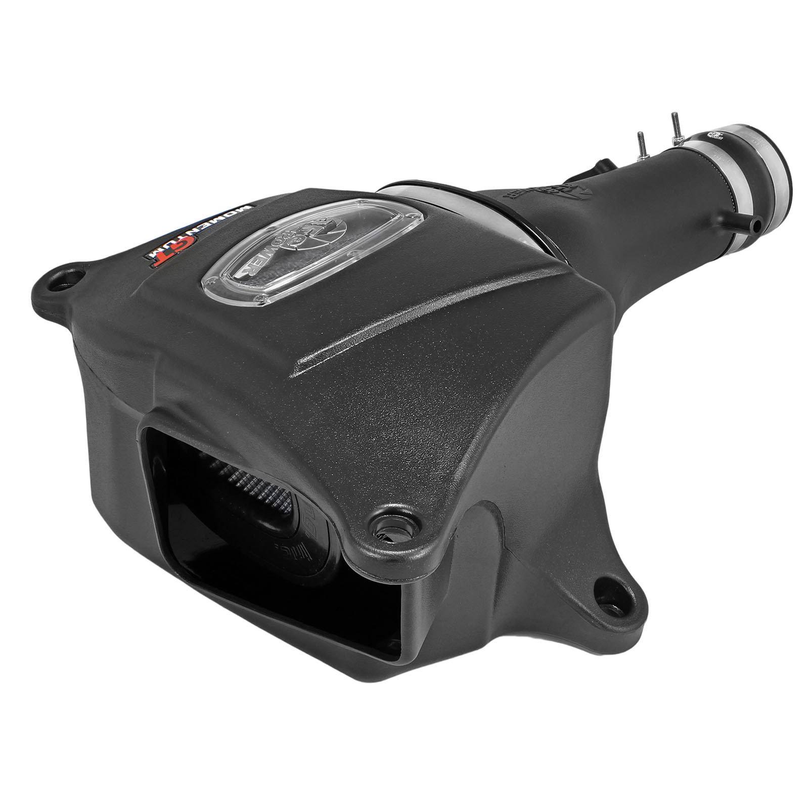 The Momentum GT intake is designed around a pre-oiled, large 9″ oval 360 degree radial flow performance air filter with 5-layers of progressive finer mesh cotton media providing maximum airflow and performance. The unique air filter to housing interface (patent pending) allows for maximum filter size which increases the available air volume while simplifying the installation process.