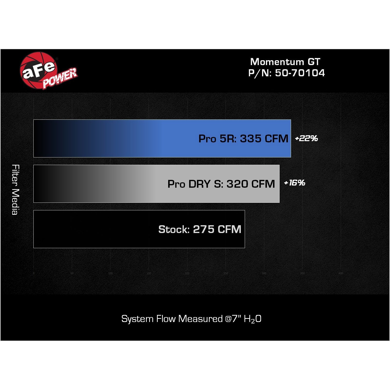 This aFe POWER Pro 5R air filter is a 7-1/2″ tall, pre-oiled, 360-degree radial flow performance air filter with five layers of progressively finer cotton gauze media for maximum performance. It provides your engine with the largest amount of high-flowing air, usually resulting in the highest power gains out of all our filter media options. This media is perfect for street and/or track use.
