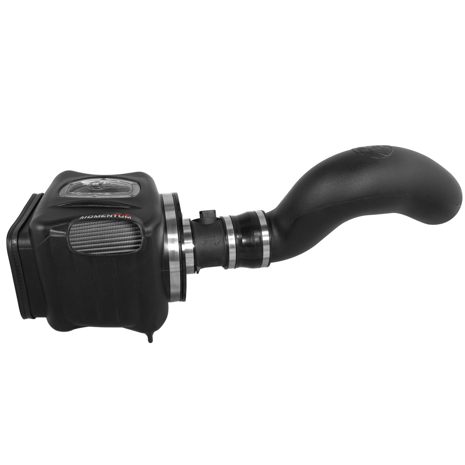 Premium stainless steel T-bolt clamps are used to securely mount the high flow air filter to the 1-piece airbox. Momentum GT intakes are designed with fewer parts for a quick and simple installation.