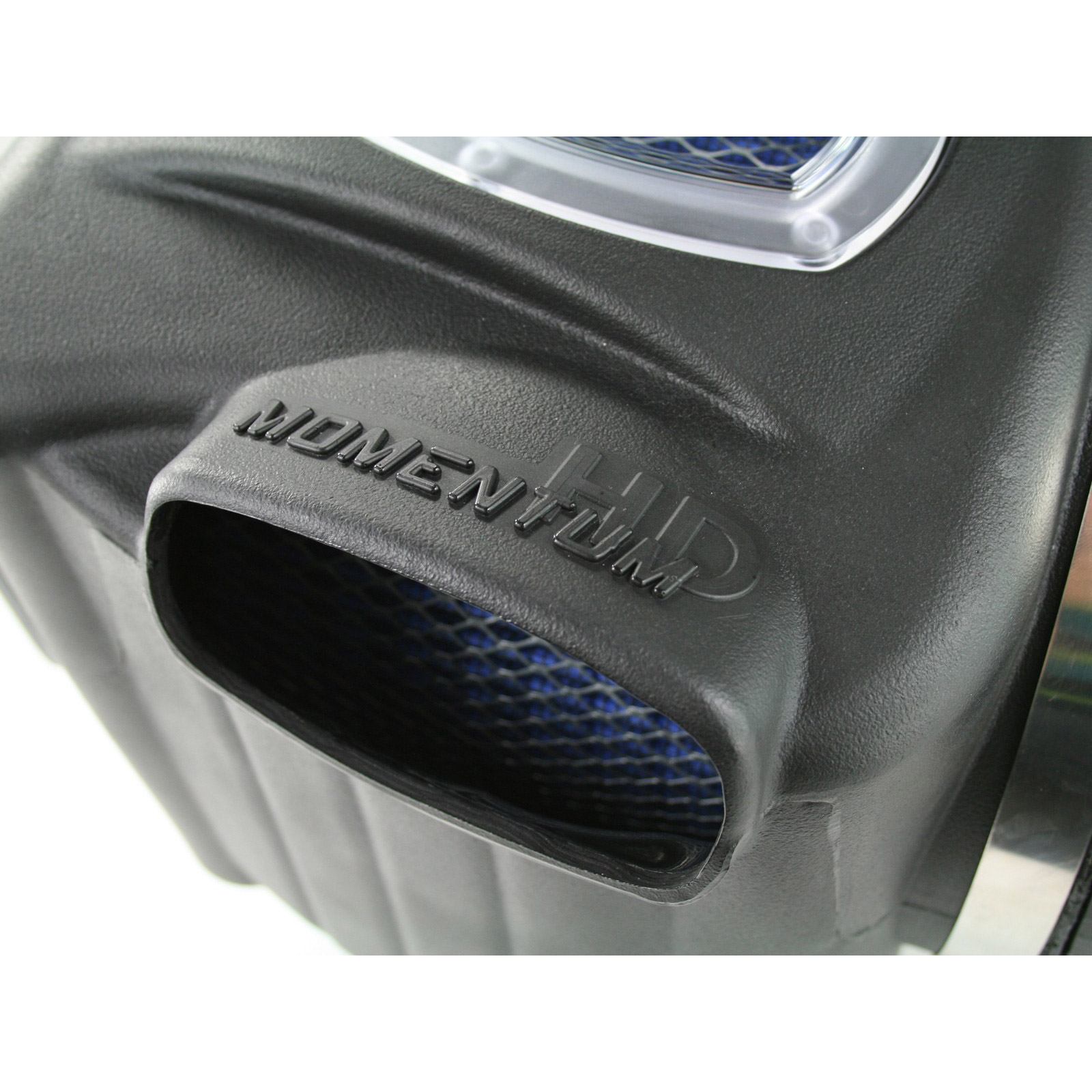 The Momentum HD intake is designed around a massive 1,000cfm performance 360 degree radial flow air filter with 3-layers of progressive finer porosity synthetic media providing maximum convenience. The unique air filter to housing interface (patent pending) allows for maximum filter size which increases the available air volume while simplifying the installation process. The air filter is wrapped in reinforced metal providing maximum strength to prevent filter collapse.