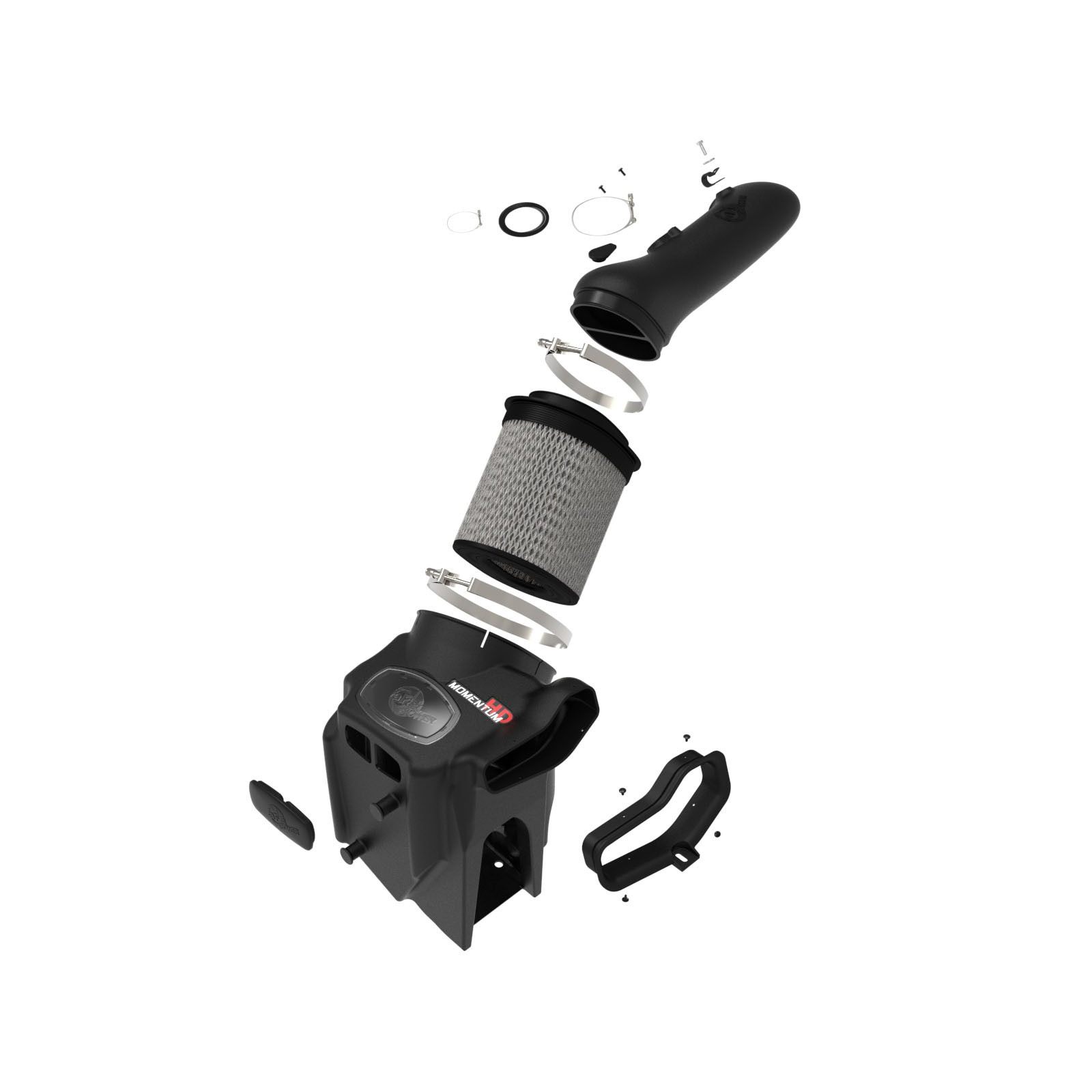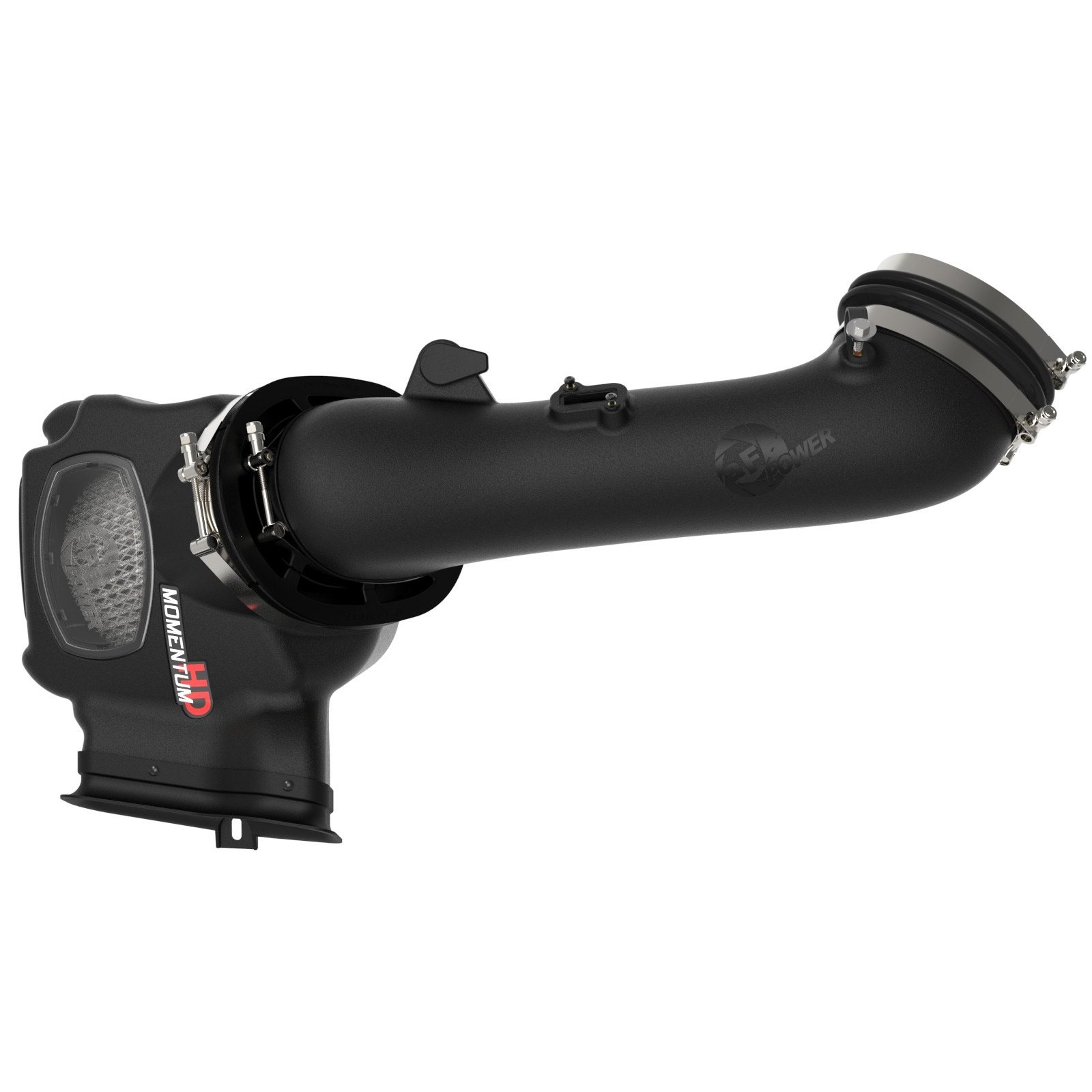 Stainless-steel T-bolt clamps and a silicone coupling are used for strength and durability. Momentum HD intakes are designed with fewer parts for a fast and easy installation.