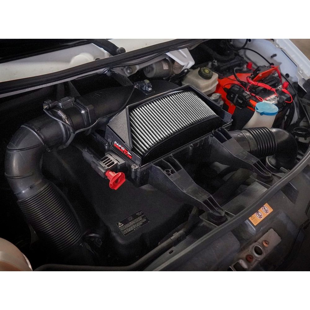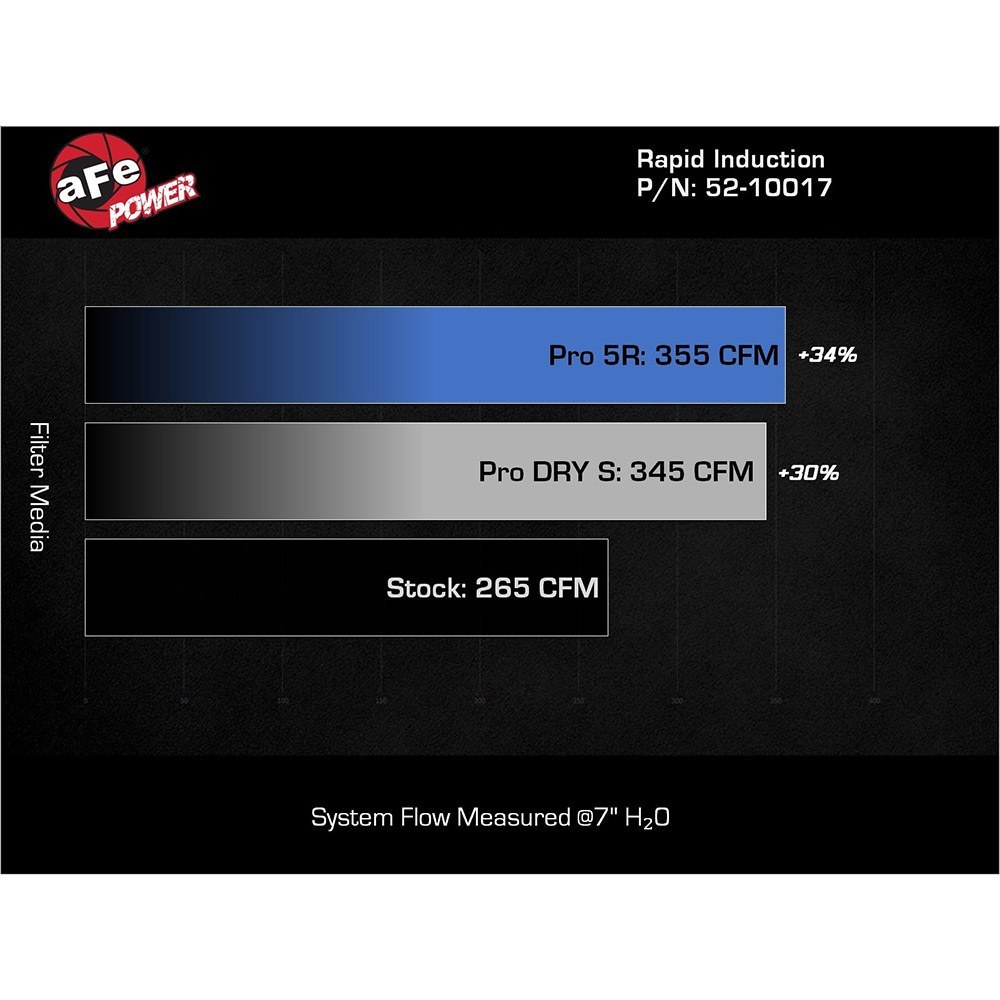 This intake system features an 5” tall oval air filter with five layers of pre-oiled cotton gauze media to provide maximum performance. Its progressive layering allows the filter to flow at high levels even when dirty. This media is perfect for street and/or track use. Pro 5R filters are easily recharged with aFe’s POWER CLEANER and blue air filter oil.