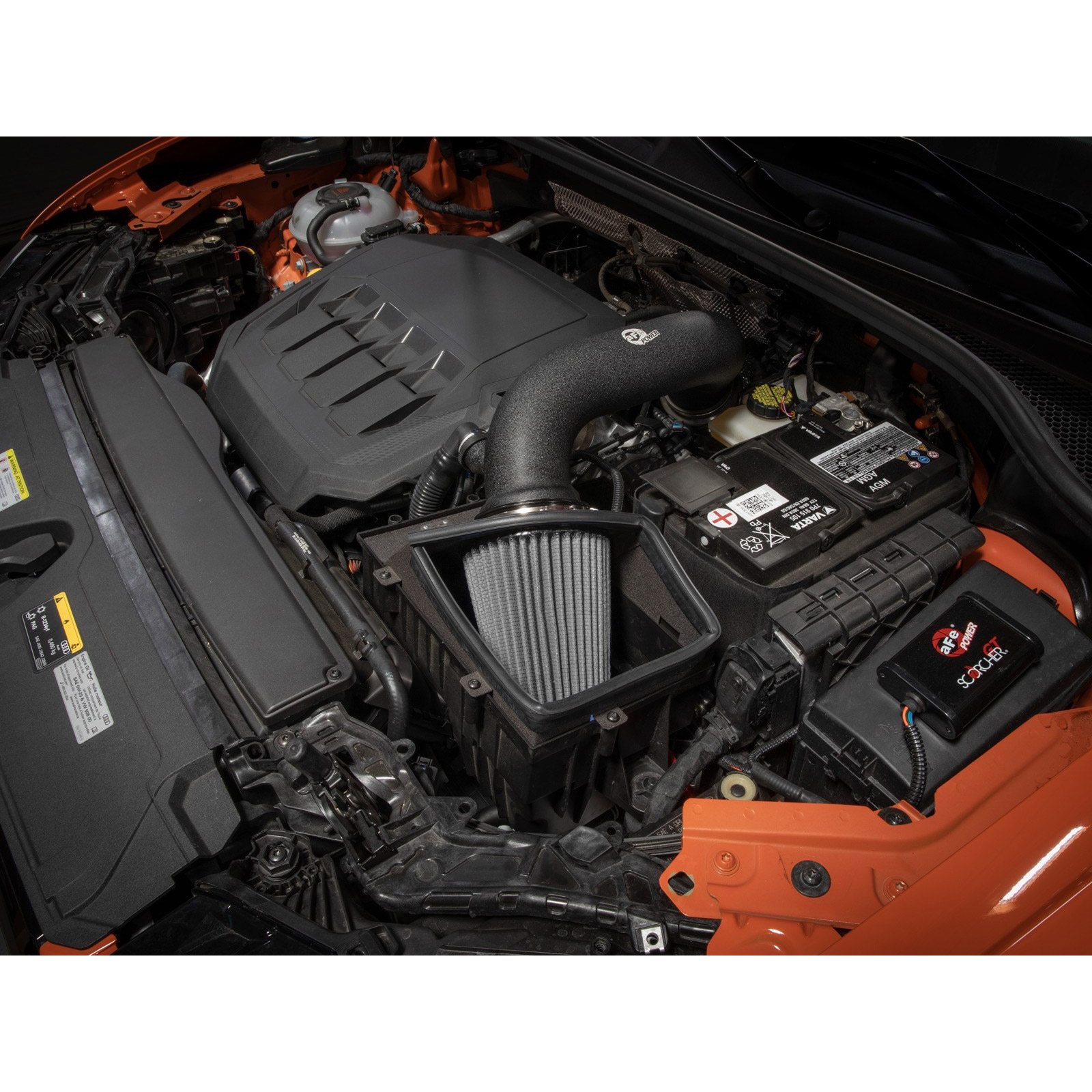 This intake system features a 7″ tall conical air filter with three layers of oil-free synthetic media and requires no oil during maintenance to provide maximum convenience. Its progressive layering provides great filtration efficiency and dust holding capacity. This media is best suited for street and light off-road use. Pro DRY S filters are easily recharged with aFe’s POWER CLEANER.