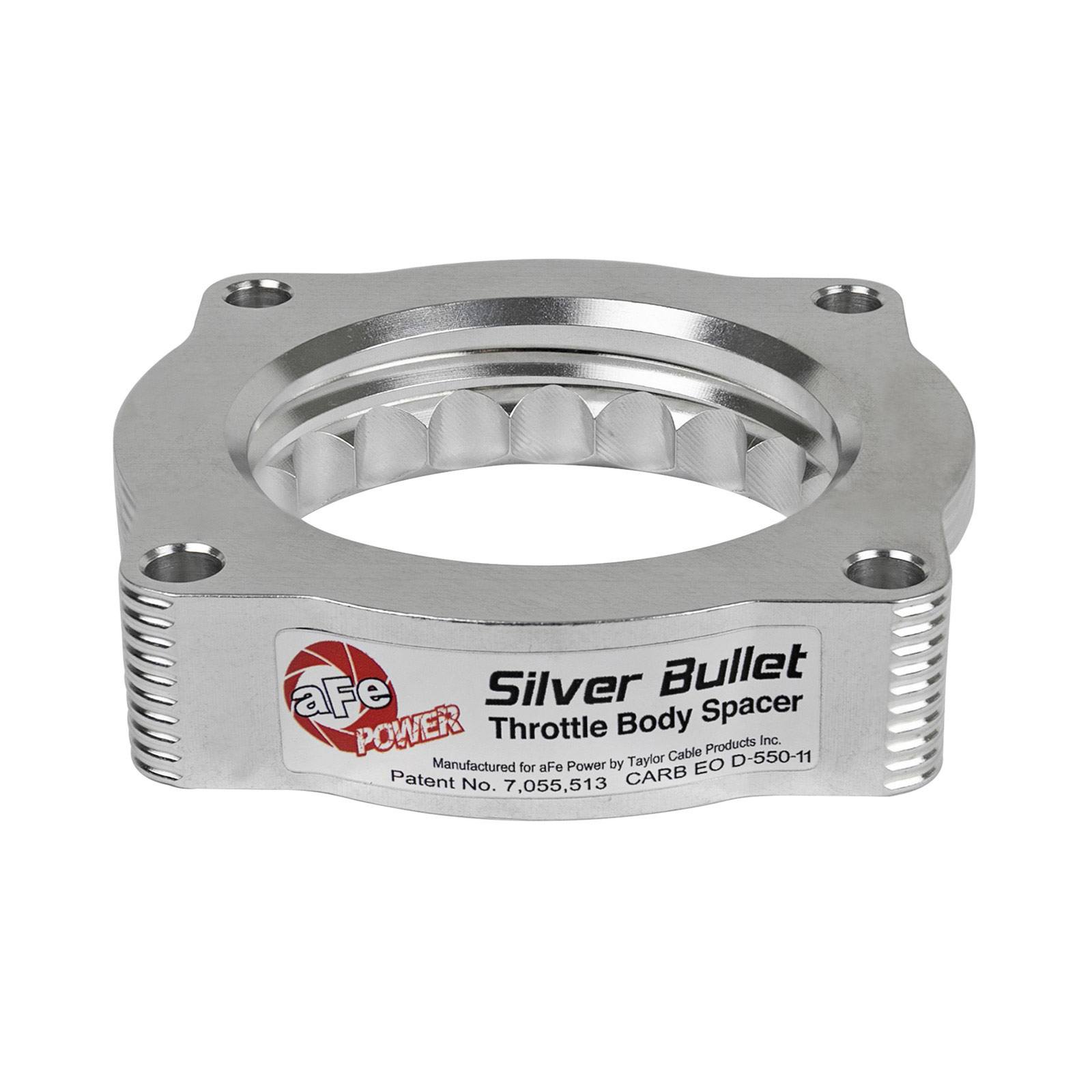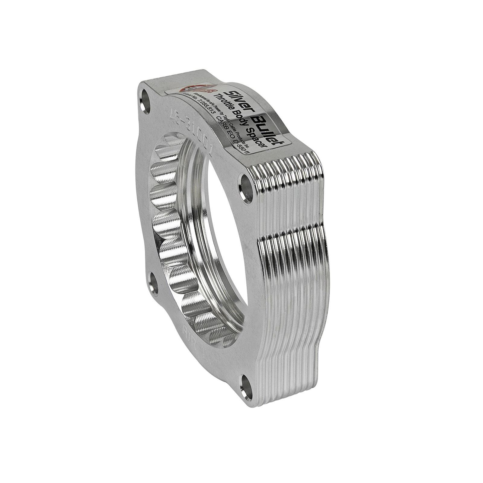 Silver Bullet throttle body spacers create turbulence in the air flow just prior to entry into the engine increasing horsepower, torque and improving throttle response. Silver Bullet throttle body spacers are constructed out of durable 6061-T6 billet aluminum and use a unique serrated/helix entry to create turbulence at the manifold while eliminating the annoying whistle found in other helix-only throttle spacers.