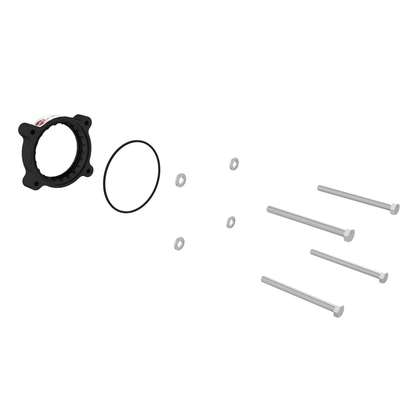 This Silver Bullet throttle body spacer uses all factory mounting locations, making for a hassle-free installation. A supplied O-ring provides a perfect seal.