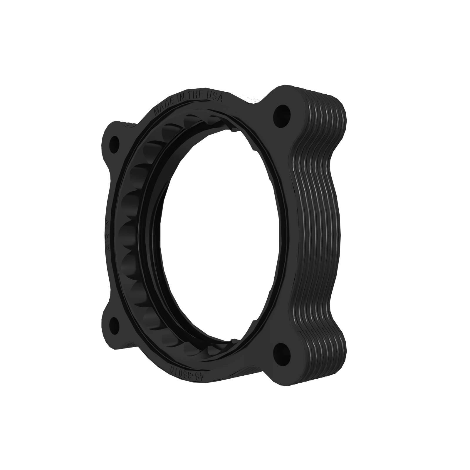 All Silver Bullet Throttle Body Spacers are constructed from 6061-T6 billet aluminum precision machined for light weight, high strength, perfect fit and finish. This spacer is anodized black for a stealthy look.