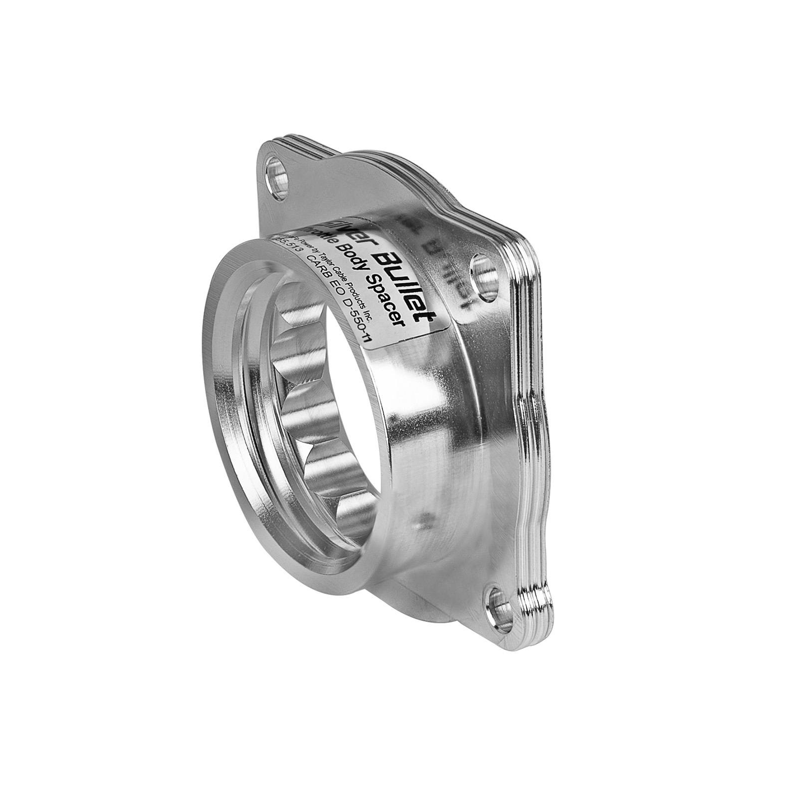 Silver Bullet throttle body spacers create turbulence in the air flow just prior to entry into the engine increasing horsepower, torque and improving throttle response. Silver Bullet throttle body spacers are constructed out of durable 6061-T6 billet aluminum and use a unique serrated/helix entry to create turbulence at the manifold while eliminating the annoying whistle found in other helix-only throttle spacers.