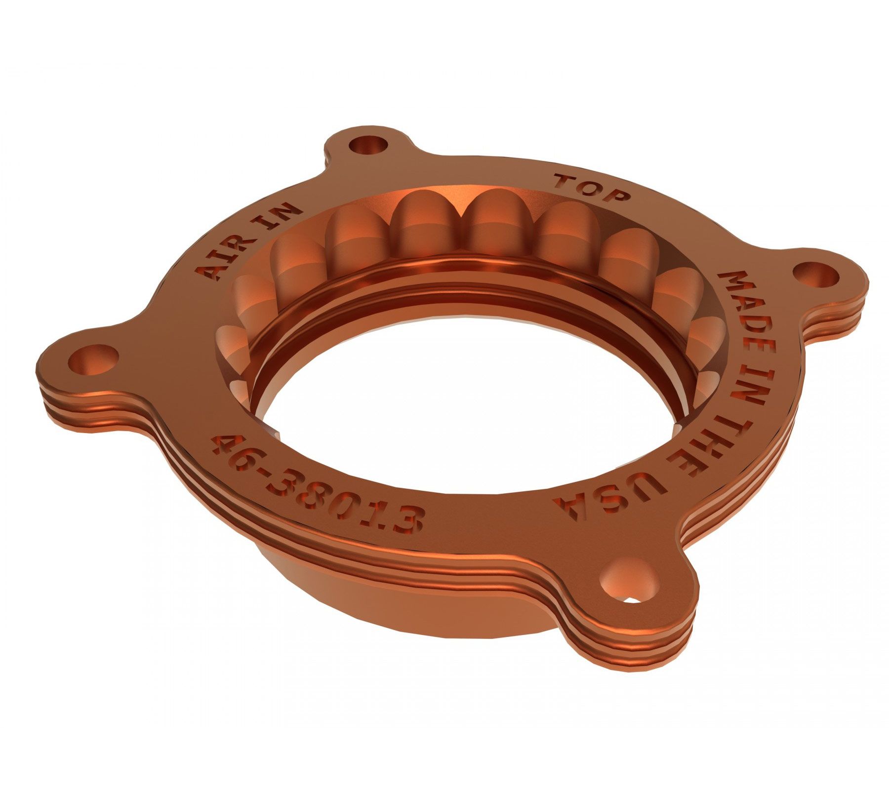 All Silver Bullet Throttle Body Spacers are constructed from 6061-T6 billet aluminum precision machined for light weight, high strength and perfect fit and finish. Complete with an orange anodized finish, this Silver Bullet throttle body spacer is sure to stand out in the engine bay.