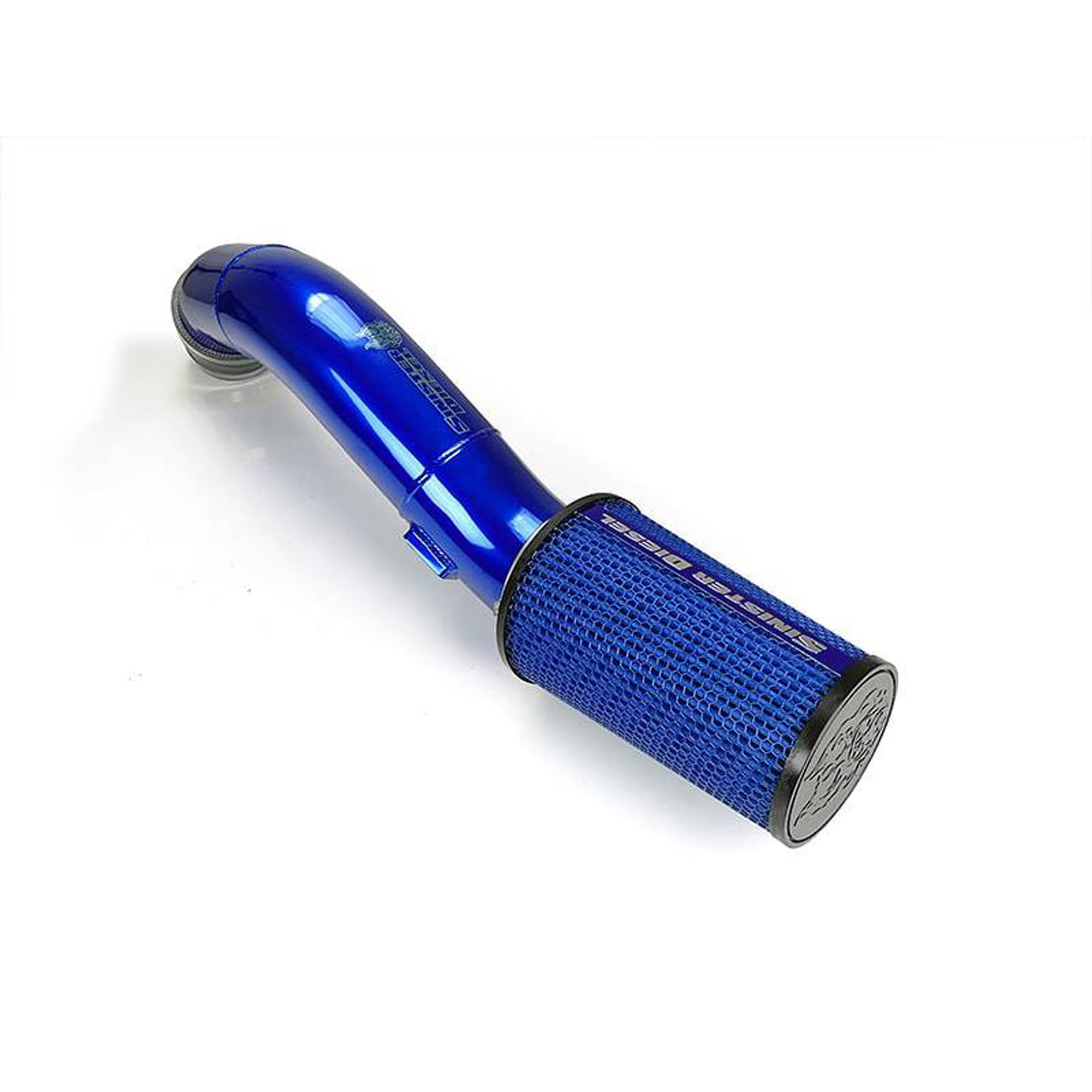 If you’re looking to get more performance and fuel economy from your 6.6L Duramax LB7 V-8, then the Sinister Diesel 2001-04 Duramax 6.6L cold air intake is the way to go. The aluminum tubing features CNC mandrel bending for smooth airflow and excellent durability, and it also comes with long-lasting reusable cotton filter media that is oversized to maximize airflow. This tubing is polished and powder coated in the signature Sinister Blue helping to combat corrosion and adding a great look under the hood.
