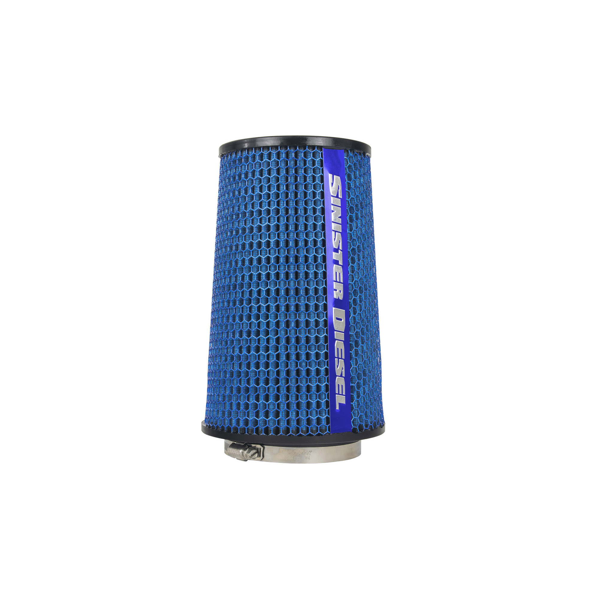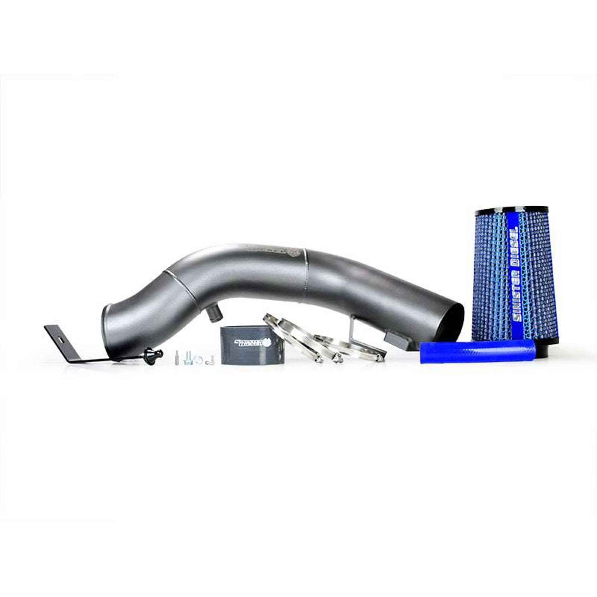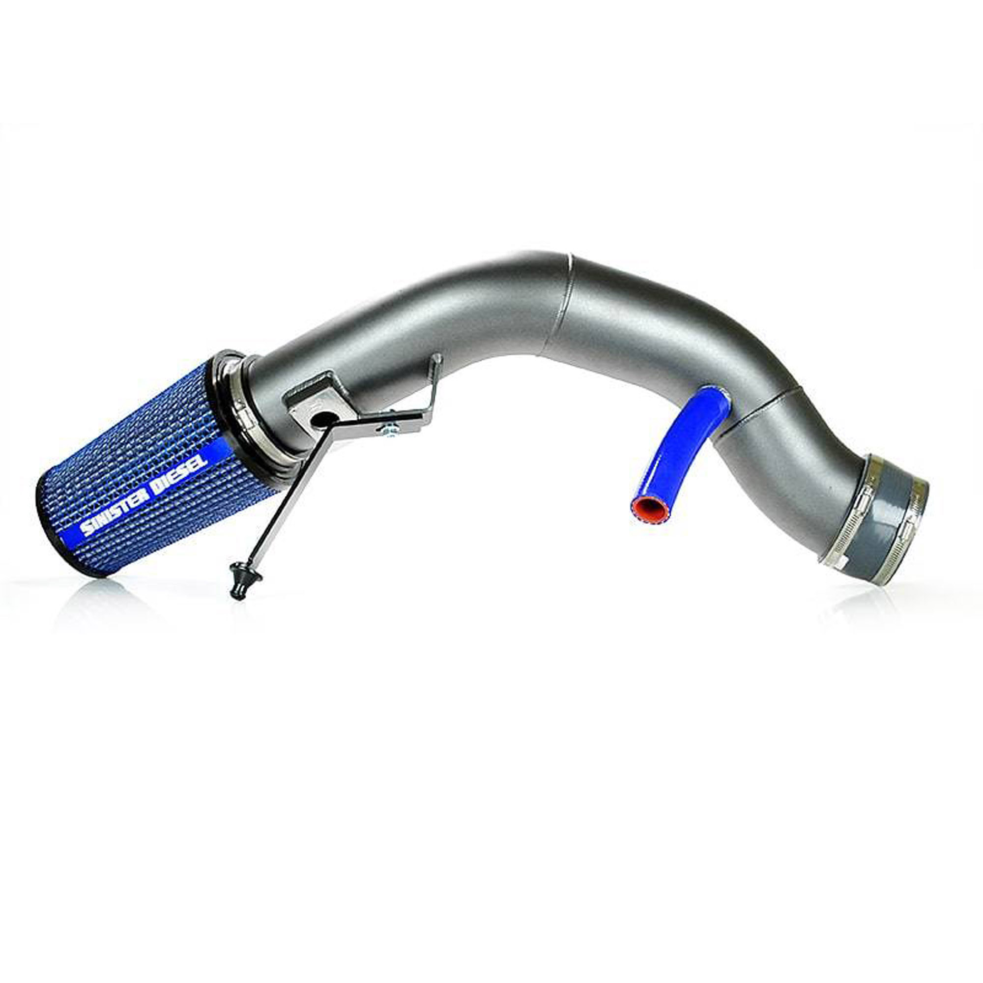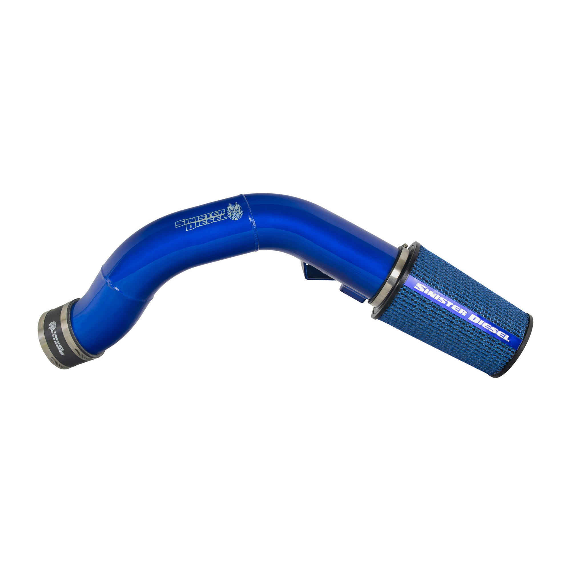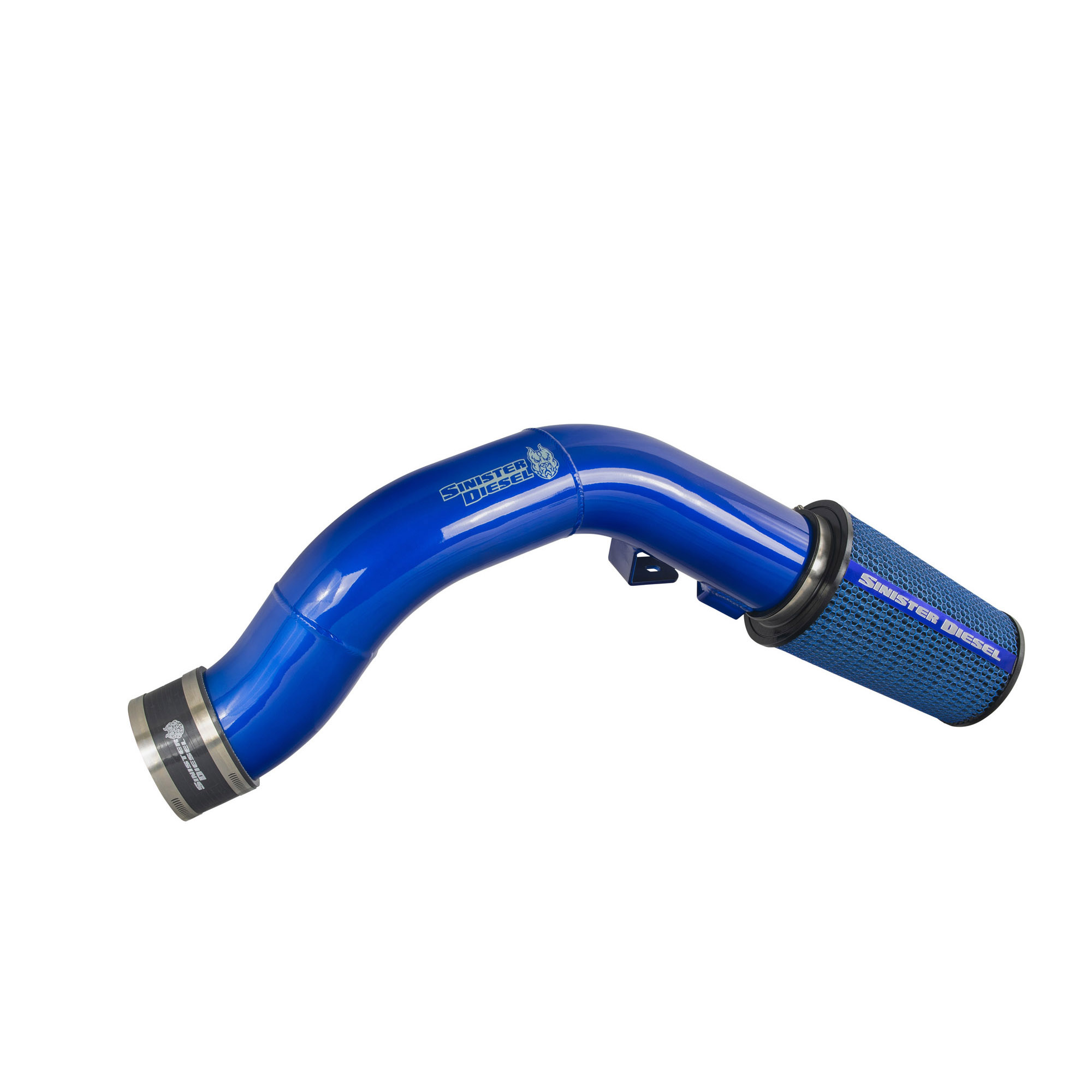 The more air you can get to your truck’s engine the better and more efficiently it runs, and factory air intakes just can’t stand up to the Sinister Diesel 2003-07 PowerStroke 6.0L cold air intake in this regard. This cold air intake kit significantly improves throttle response and turbo spool up, and it’s great for daily driving, towing and even racing applications!If you’re looking to get more performance and fuel economy from your 6.0L PowerStroke V-8, then the Sinister Diesel 2003-07 PowerStroke 6.0L cold air intake is the way to go. The aluminum tubing features CNC mandrel bending for smooth airflow and excellent durability, and it also comes with long-lasting reusable cotton filter media that is oversized to maximize air flow. This tubing is polished and powder coated in the signature Sinister Blue helping to combat corrosion and adding a great look under the hood.