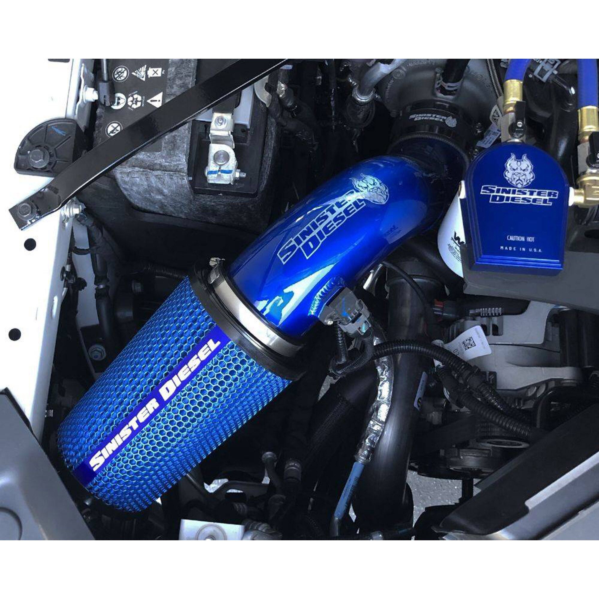 Sinister Diesel only uses a precision CNC mandrel bent aluminum tube for the intake, ensuring smooth flow of air. Silicone couplings combine with the Signature Sinister Blue powder coat for an attractive and durable solution. You also enjoy a cleanable cotton element air filter, so buying new filters is a thing of the past. Installation is simple and all mounting hardware comes included.