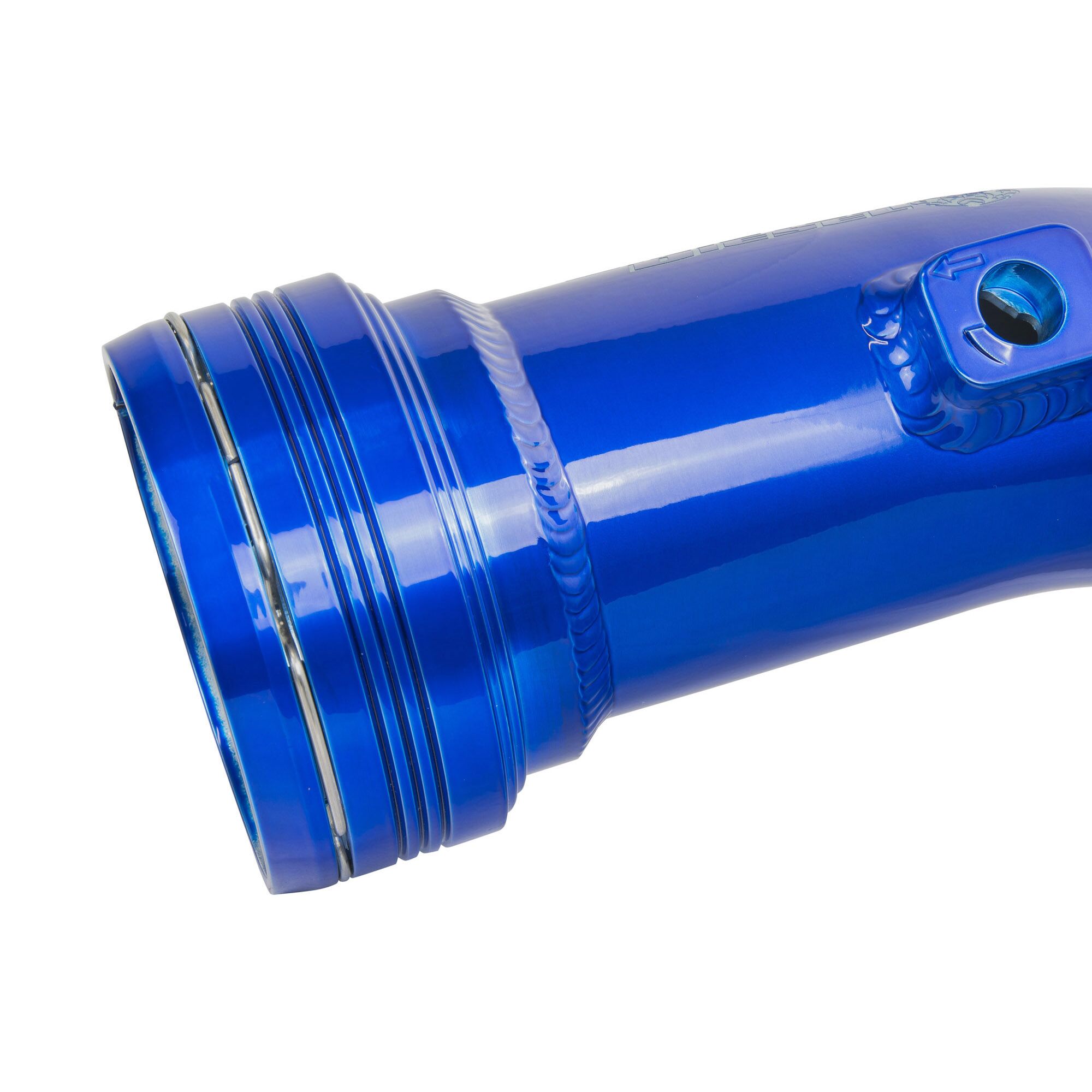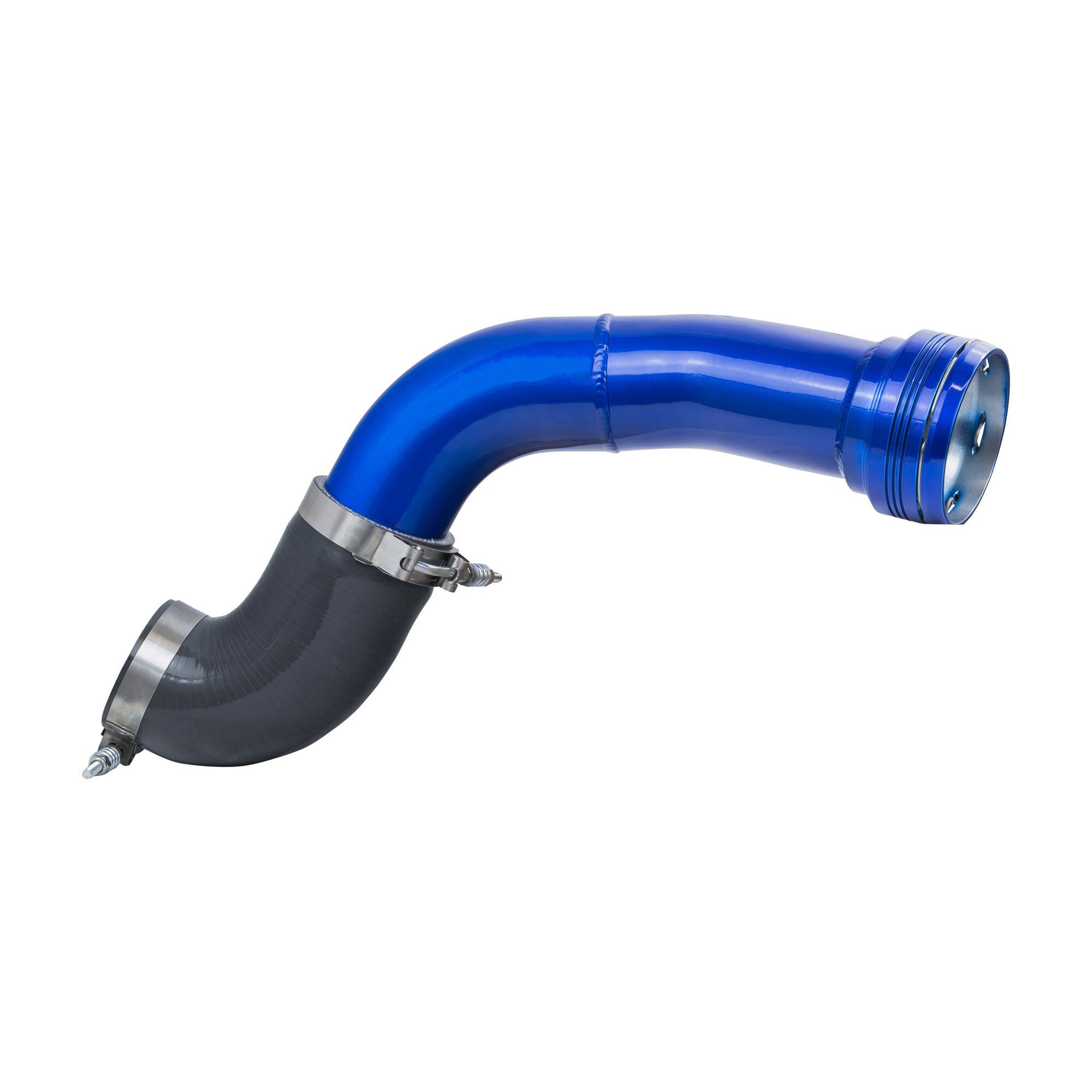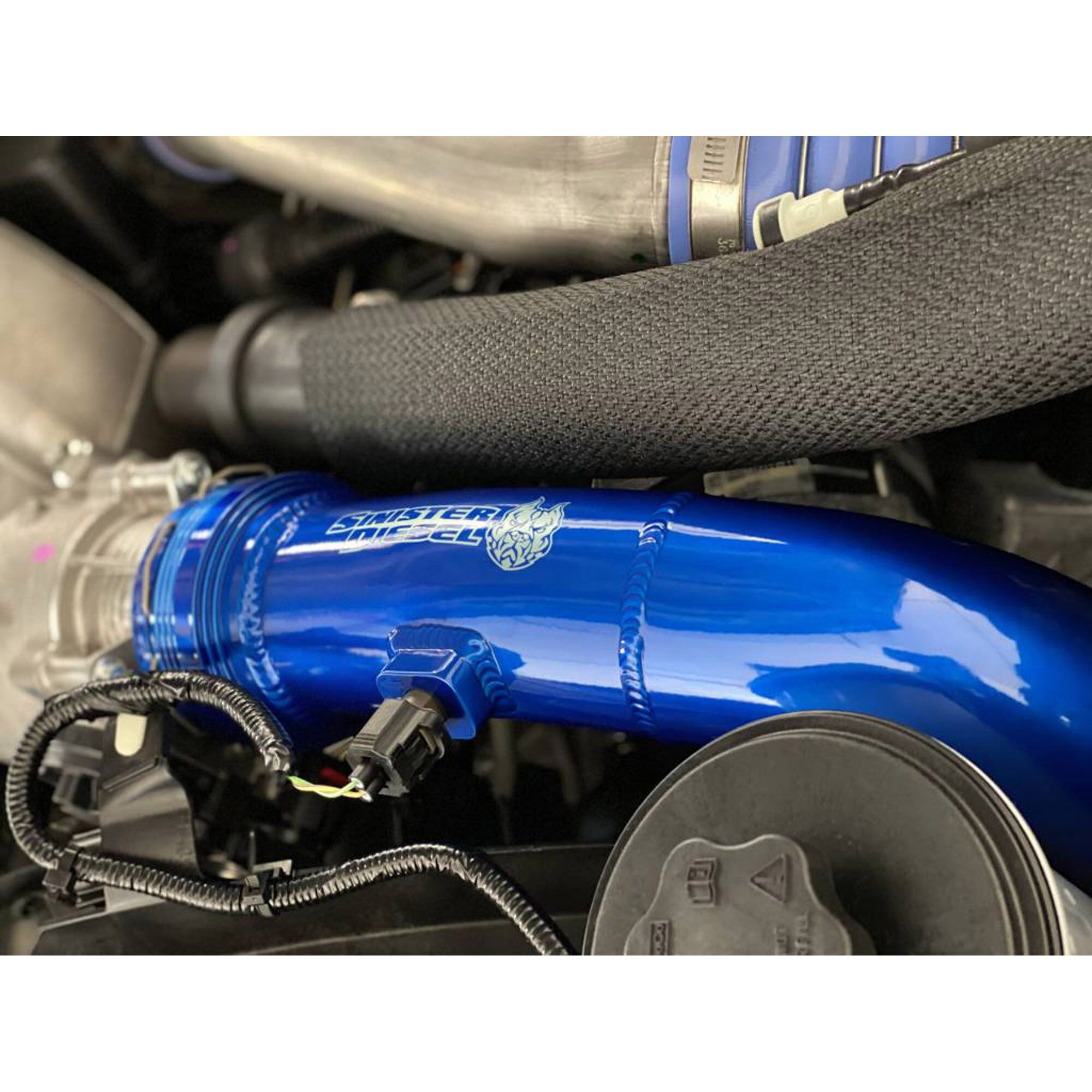 The Sinister Diesel Cold Side Charge Pipe is a performance upgrade for the 2017+ Ford 6.7L Powerstroke diesel engine. This charge pipe is designed to replace the factory plastic cold side intercooler pipe, which is prone to cracking and leaking under high boost conditions. Our charge pipe is made from high-quality aluminum tubing, which is mandrel-bent to ensure smooth airflow and maximum performance. The pipe is also powder-coated for added durability and a sleek look under the hood.