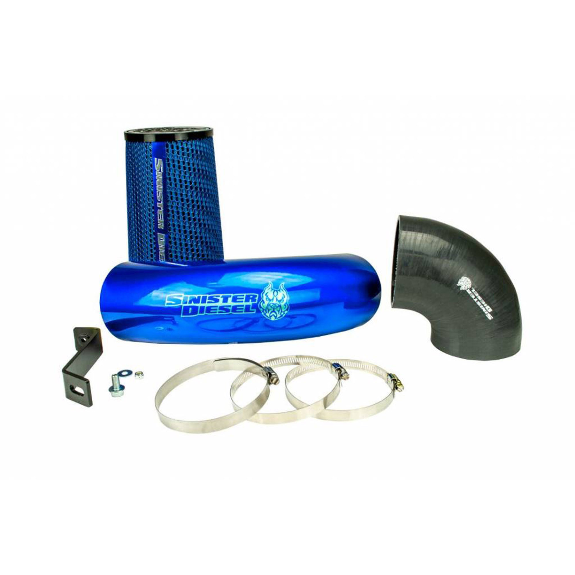 Sinister Diesel only uses a precision CNC mandrel bent aluminum tube for the intake, ensuring smooth flow of air. Silicone couplings combine with the Signature Sinister Blue powder coat for an attractive and durable solution. You also enjoy a cleanable cotton element air filter, so buying new filters is a thing of the past. Installation is simple and all mounting hardware comes included.