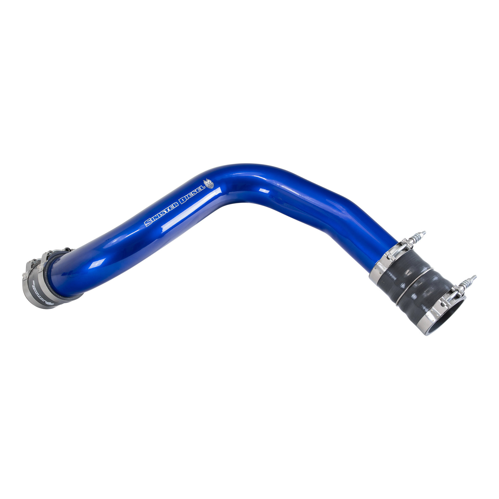 Upgrade your 1999.5-2003 Ford Powerstroke 7.3L with the Sinister Diesel Hot Side Charge Pipe. This performance-enhancing component is designed to optimize airflow and turbo efficiency by reducing restrictions and improving airflow, delivering increased power and improved throttle response to your diesel engine. Built to withstand the demands of diesel engines, this charge pipe is constructed from high-quality materials. The mandrel-bent aluminum tubing ensures excellent durability, while the reinforced silicone couples and stainless steel t-bolt clamps provide a secure and leak-free connection. This robust construction ensures long-lasting performance even under high-boost conditions.