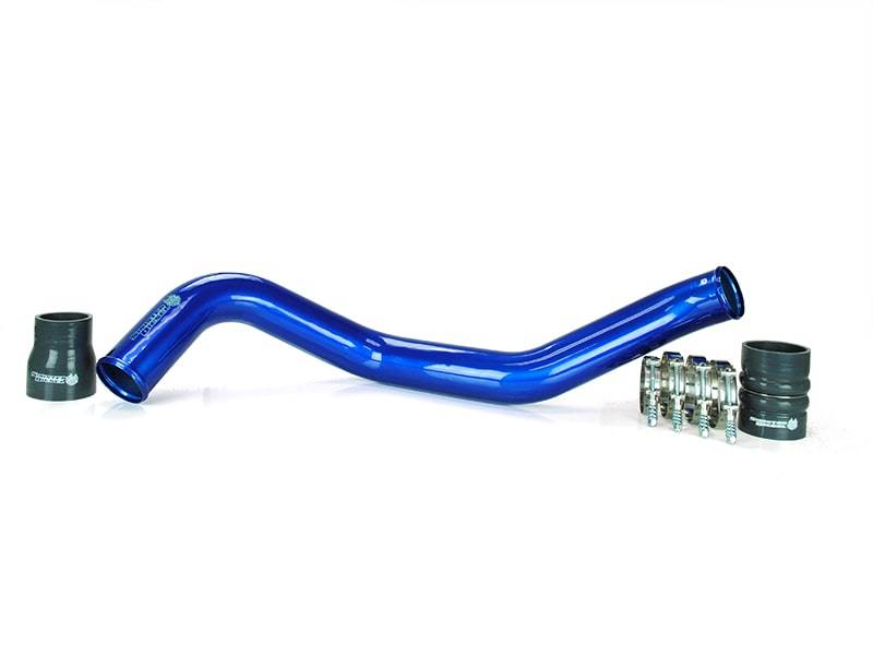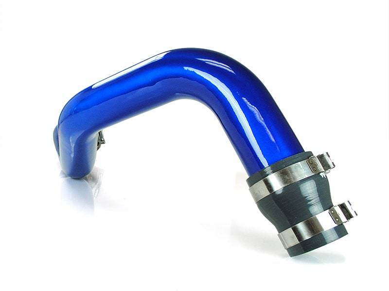 The Sinister Diesel Charge Pipe Kit for the Duramax LMM 6.6L includes the intercooler pipe that connects the turbocharger compressor to the intercooler. This upgraded pipe is larger in diameter and has smooth mandrel bends to increase air flow velocity to improve power and lower EGTs. The Sinister Diesel Charge Pipe Kit is also more durable, being made from 6061 Aluminum alloy and connected with Sinister Diesel’s 4-ply silicone boots that are rated up to 400psi. Our Intercooler Pipes are TIG welded and finished in polished powder-coated Sinister Blue for a beautiful under-hood look.
