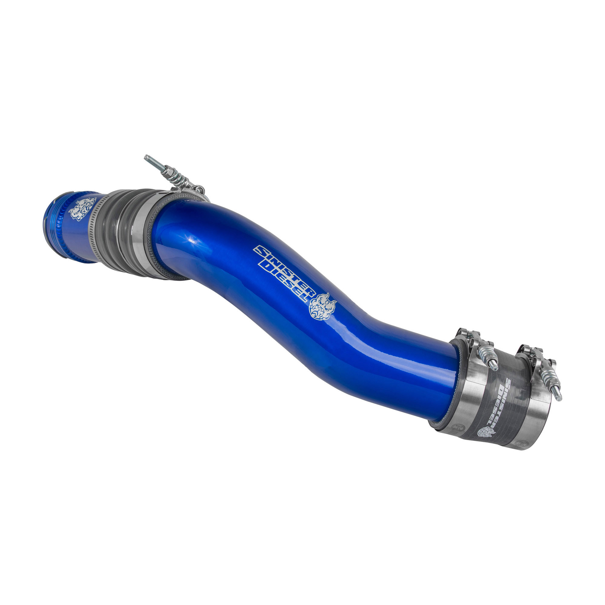 The Sinister Diesel Hot Side Charge Pipe for the Powerstroke 6.7L replaces the stock, restrictive piping that connects the turbocharger to your intercooler. This upgraded pipe is larger in diameter and has smooth mandrel bends to increase air flow velocity to improve power and lower EGTs. The Sinister Hot Side Charge Pipe is also more durable, being made from 6061 Aluminum alloy and connected with Sinister Diesel’s 4-ply silicone boots that are rated up to 400psi. Our Intercooler Pipes are masterfully back-purge TIG welded and finished in polished powdercoated Sinister Gray for a beautiful under-hood look.