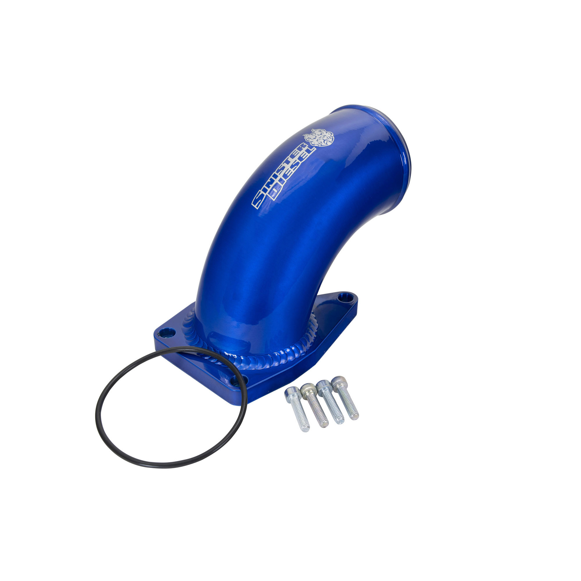 The Sinister Diesel 6.0L Power Stroke intake elbow replaces the restrictive stock piping on your 2003-2007 Ford F-250, F-350 Super Duty or 2003.5-2005 Excursion 6.0 with larger diameter CNC mandrel-bent aluminum tubing. The increased diameter and large radius bend prevents restriction within the intake for a noticeable increase in performance while the stronger aluminum tubing and CNC machined base plate is designed to hold higher boost levels. Finished with in eye-catching Sinister’s Sinister Gray powder coat, the Sinister Diesel 6.0L Power Stroke Intake Elbow provides an upgrade over the stock plastic unit.