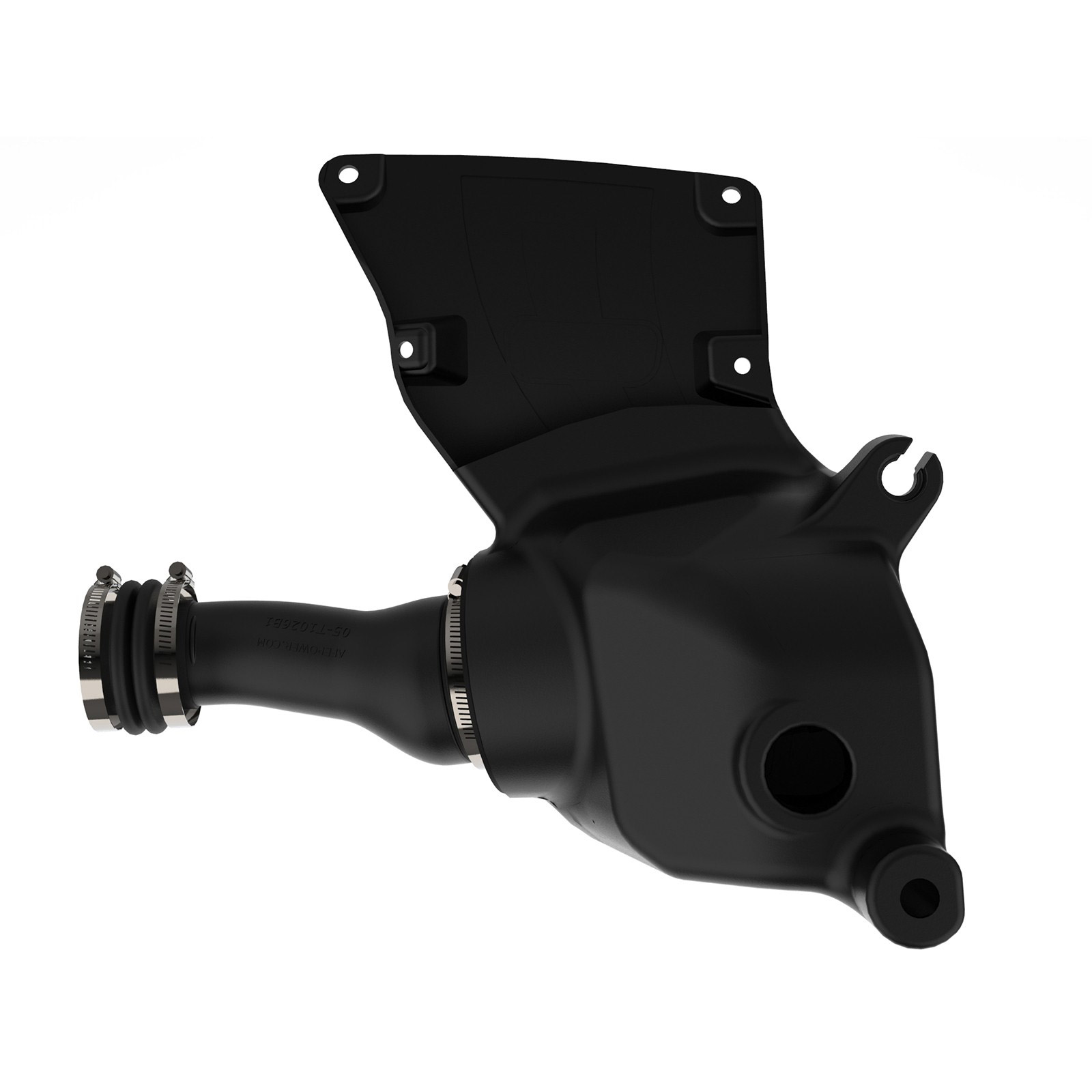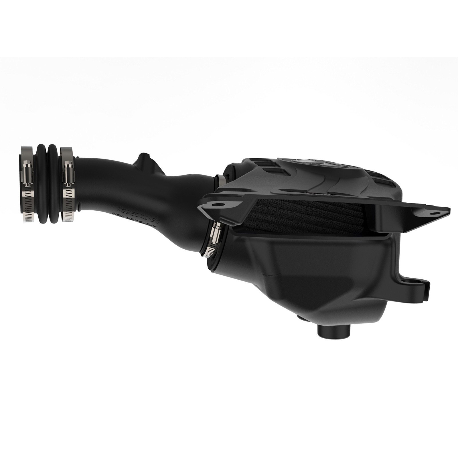 A custom computer-designed roto-molded housing with a unique filter-to-housing interface (Patent Pending) eliminates the use of multiple components. Its heat resistant cross-linked polyethylene (XLPE) material, along with a massive built-in air scoop, ensures the coolest air intake charge available. A large clear sight window allows for filter inspection without removal of the air box.