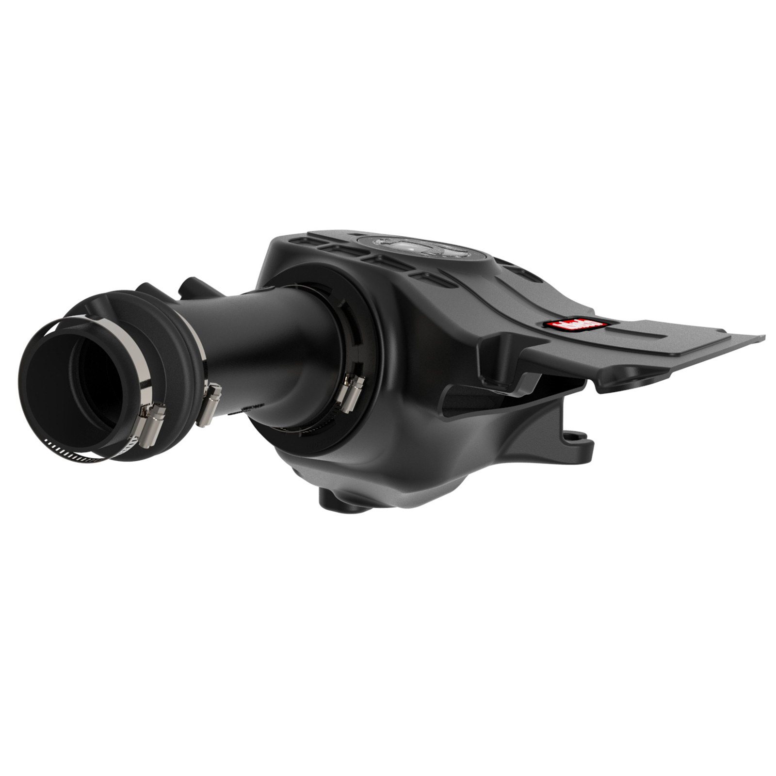 The smooth one-piece sealed housing, constructed of cross-linked polyethylene (XLPE), is used to eliminate the use of an overabundance of parts and ensure the coolest air intake charge possible. It features a built-in air scoop to draw in cool air from the front of the vehicle, and a clear sight window for hassle-free filter inspection.