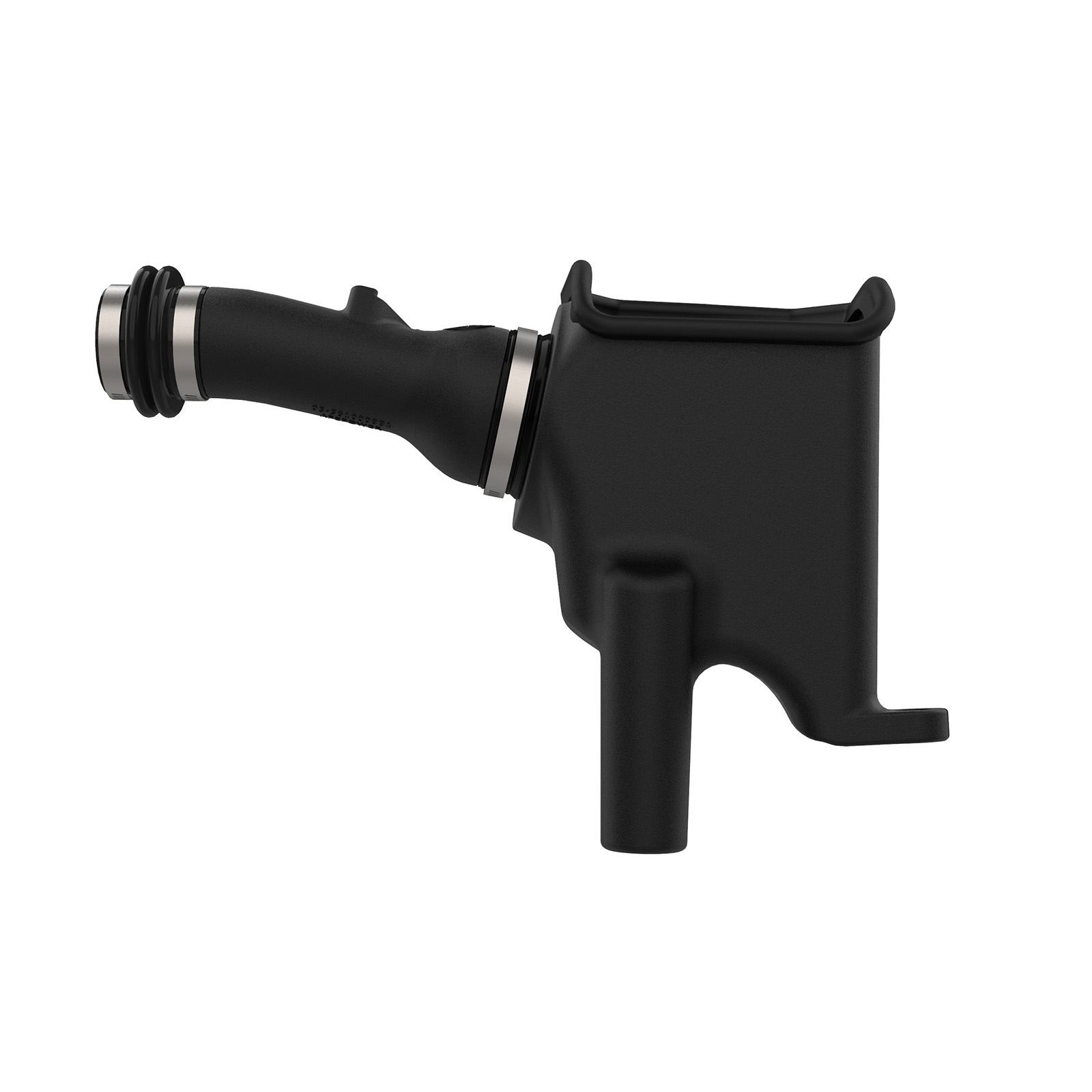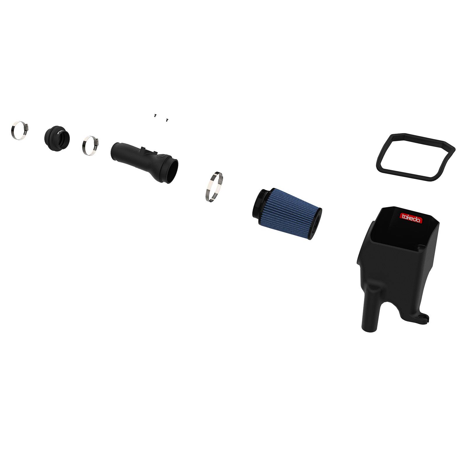 This is a direct fit intake system that utilizes factory mounting points and requires no cutting or modifications. All necessary clamps, couplings, and hardware are included. Its revolutionary design, featuring our patent pending filter-to-housing interface, uses half the number of parts of a traditional cold air intake system.