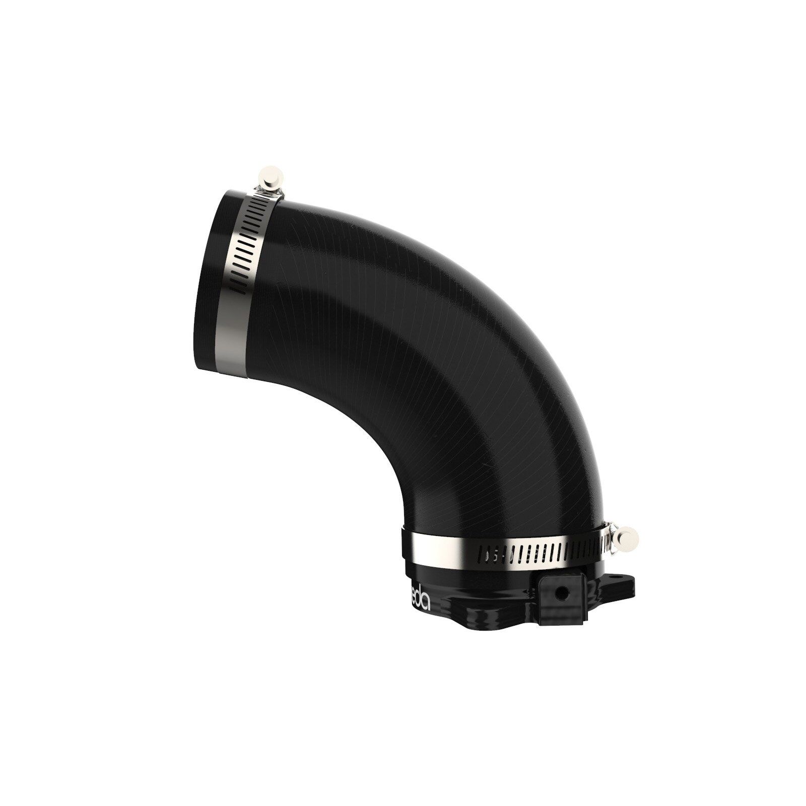 This turbo inlet utilizes a flexible silicone coupling that is reinforced with three layers of polyester material, making it resistant to wear and deterioration. The silicone coupling mates directly to the aluminum turbo adapter and the factory air intake tube. All necessary clamps are provided.