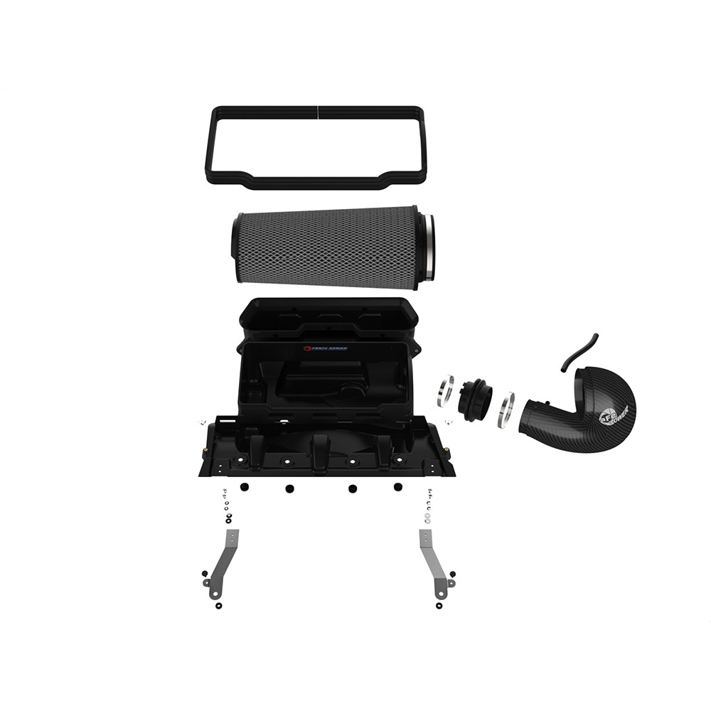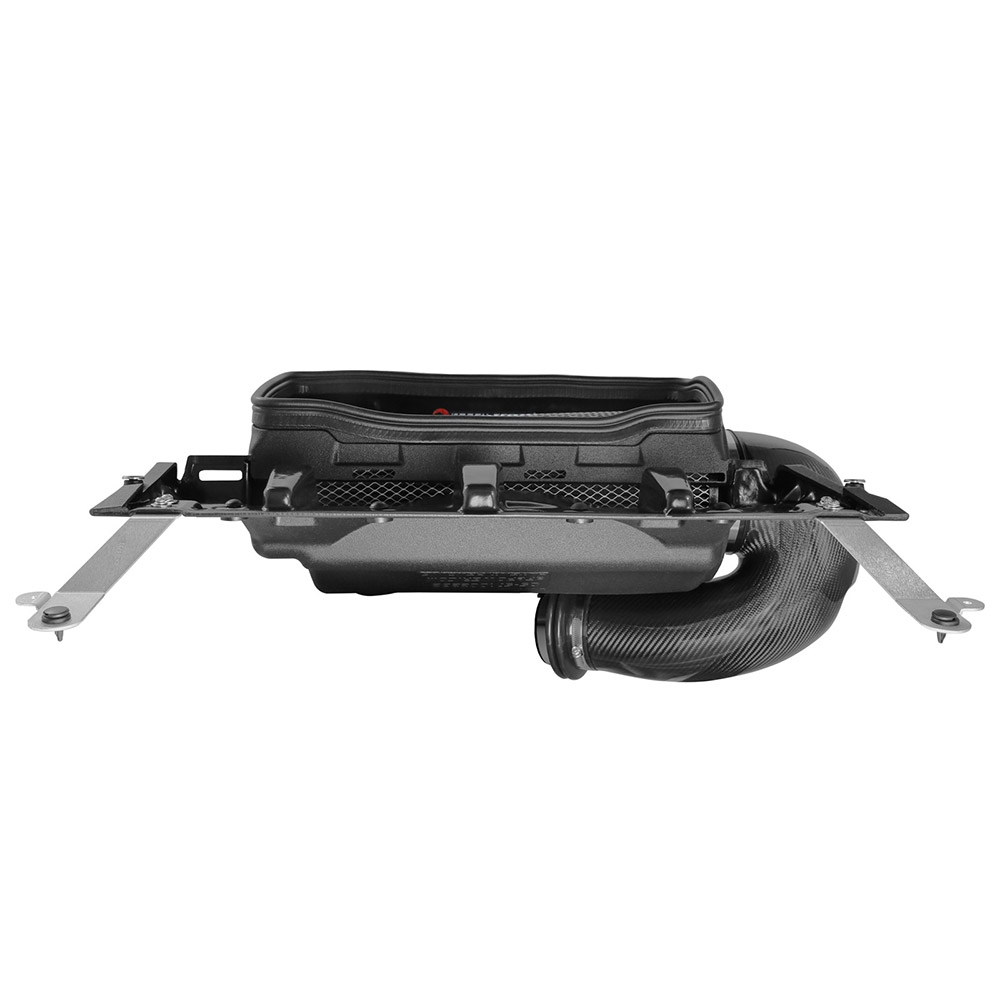 The included massive air filter is surrounded by an open-element XLPE (cross-linked polyethylene) polymer housing that minimizes warm engine air for maximum performance. Its open design allows for easy viewing of the air filter and delivers an aggressive Air Intake sound. The housing incorporates both the factory hood air inlet scoop and the grille inlet using no additional hardware.