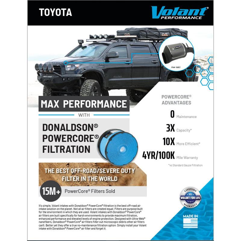 Volant air intake systems utilize a high-velocity venturi filter adapter which provides a smooth transition through the MAF sensor into the intake tube for a much needed airflow improvement over the factory rubber tubing and resonator box. Volant’s Cool Air box is larger than the factory unit and incorporates a larger opening to collect a higher volume of colder ambient air.