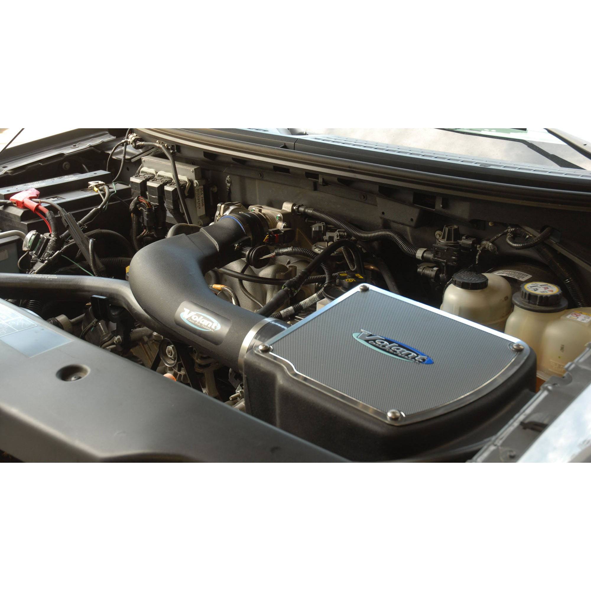 Volant air intake systems utilize a high-velocity venturi filter adapter which provides a smooth transition through the MAF sensor into the intake tube for a much needed airflow improvement over the factory rubber tubing and resonator box. Volant’s Cool Air box is larger than the factory unit and incorporates a larger opening to collect a higher volume of colder ambient air.